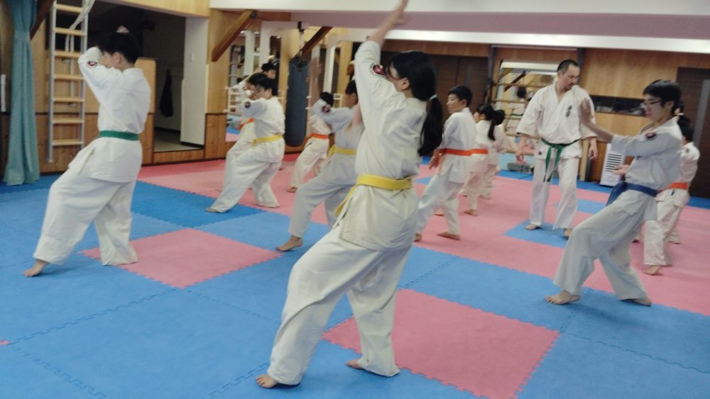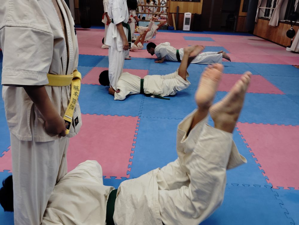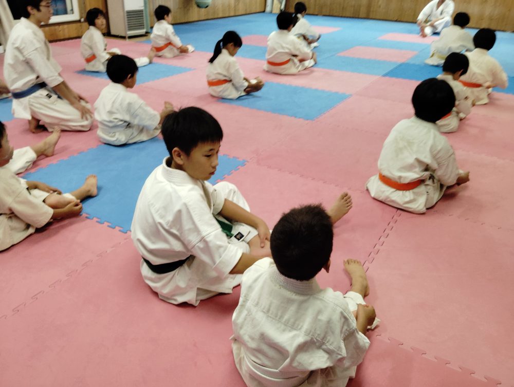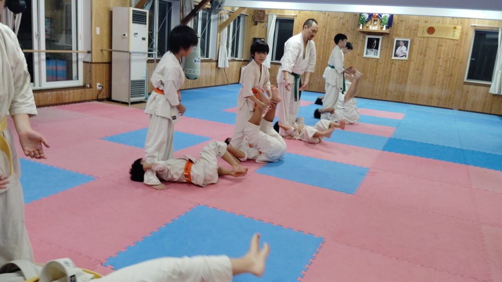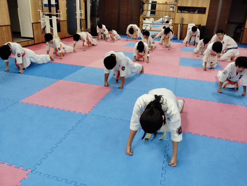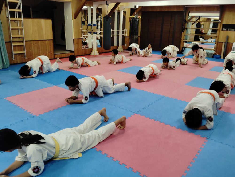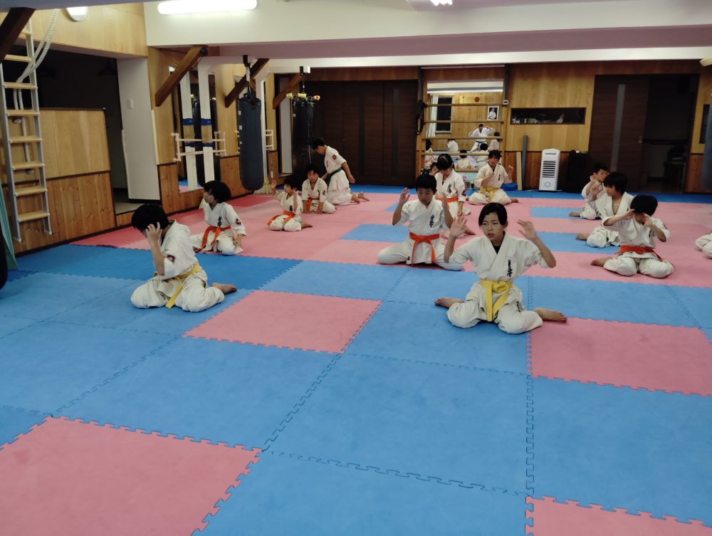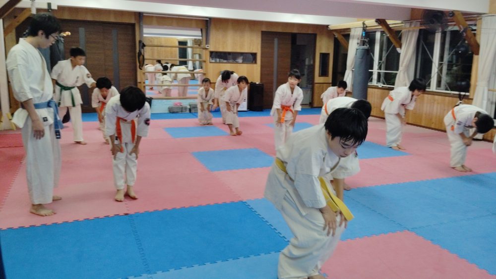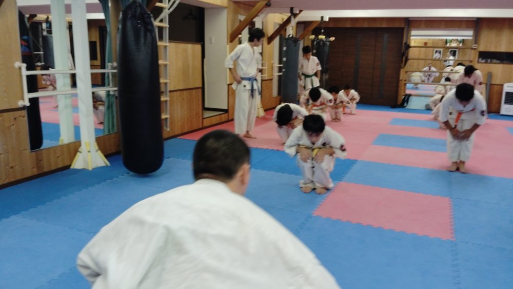 矢野満久先輩が準備体操、基本稽古、補強稽古の指導を行います。
