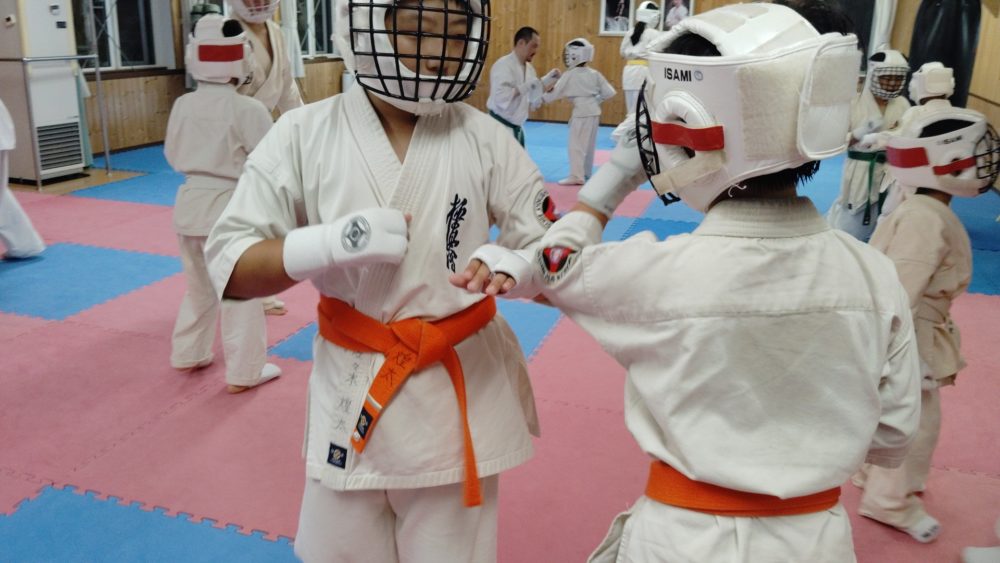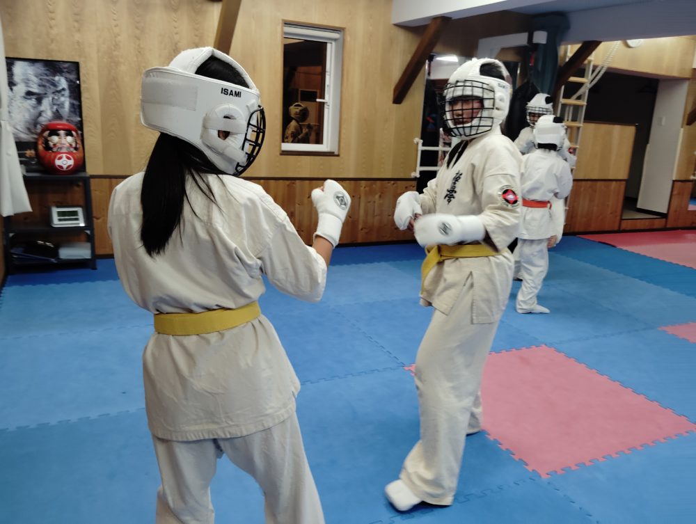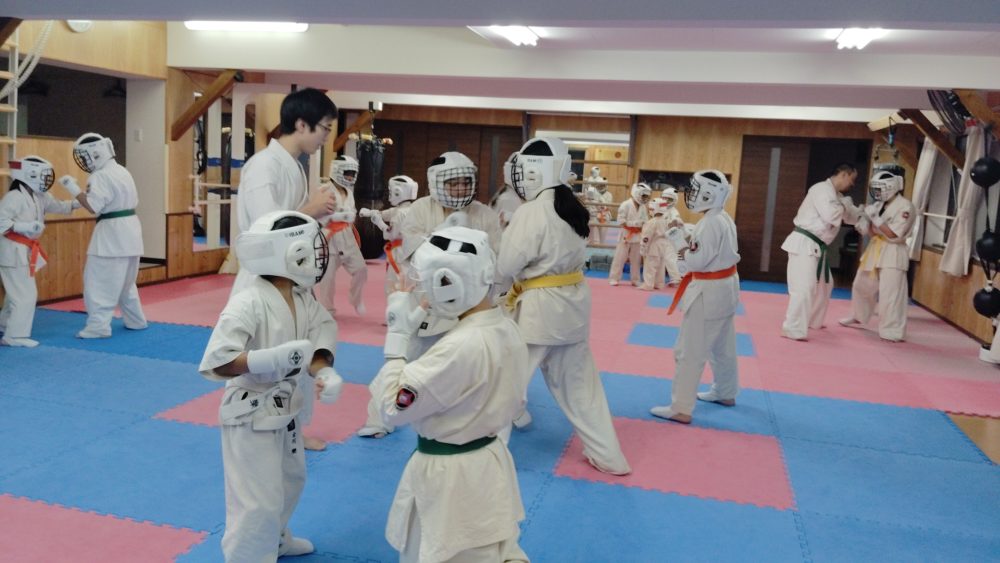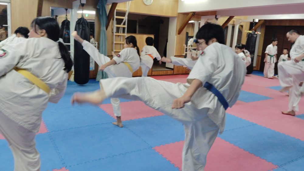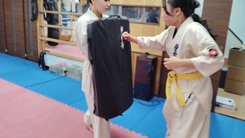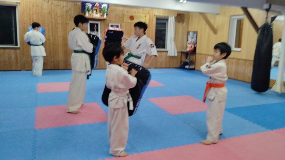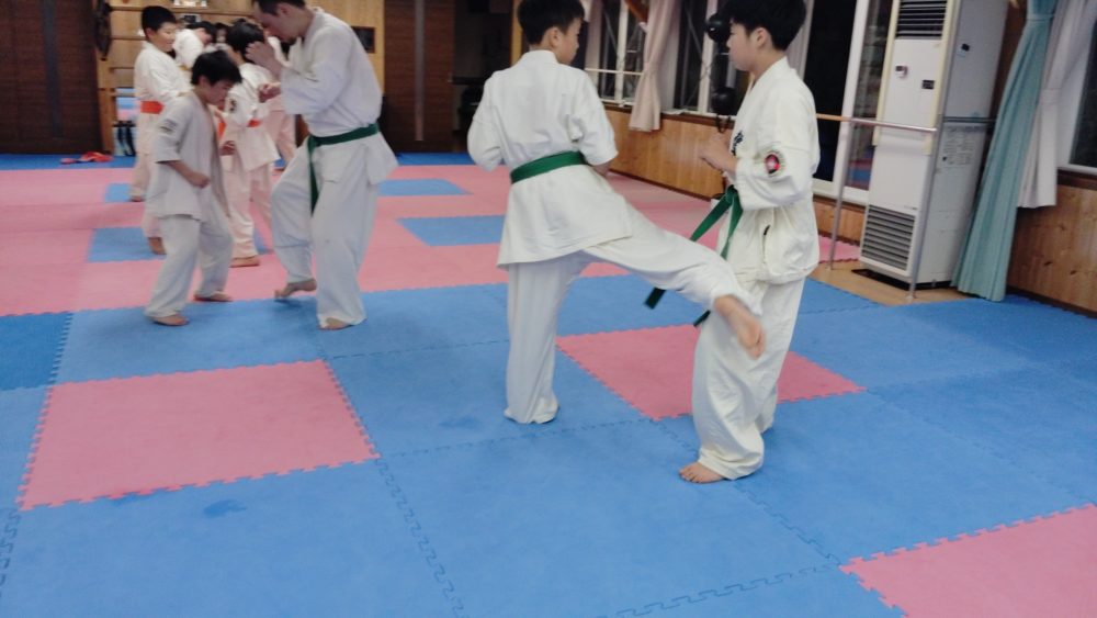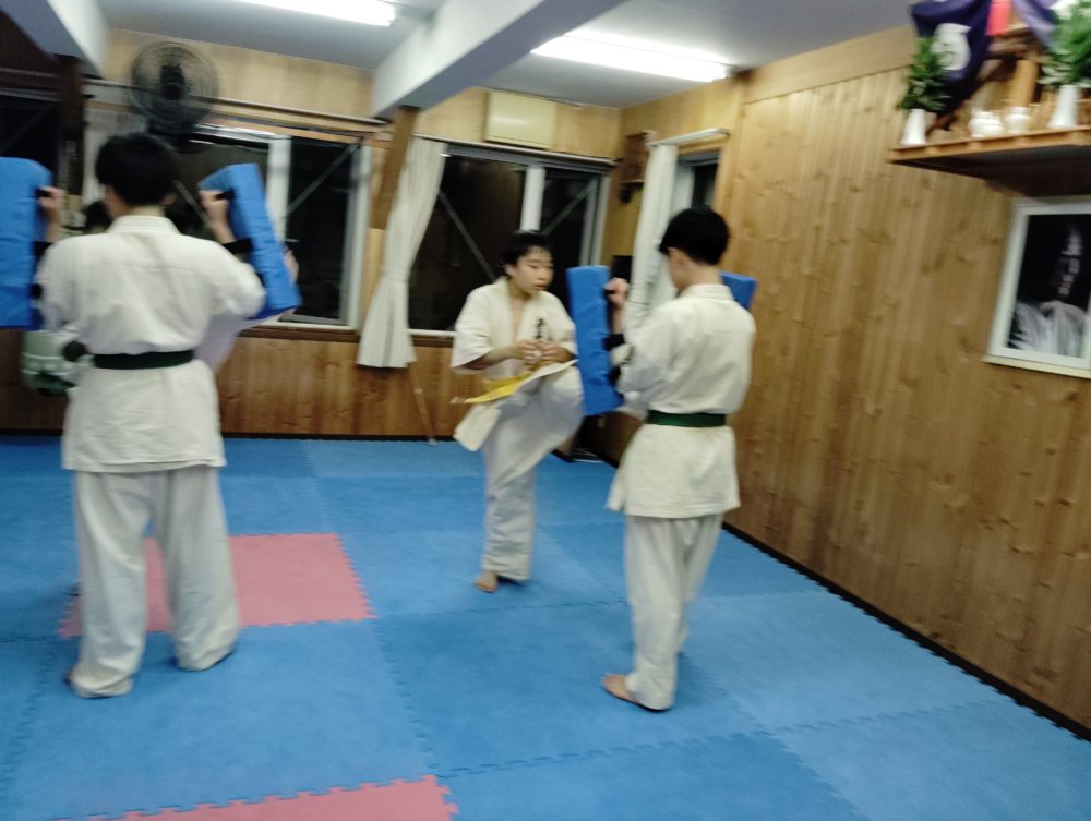 上段廻し蹴りから後ろ廻し蹴り、前蹴りに繋ぎます。