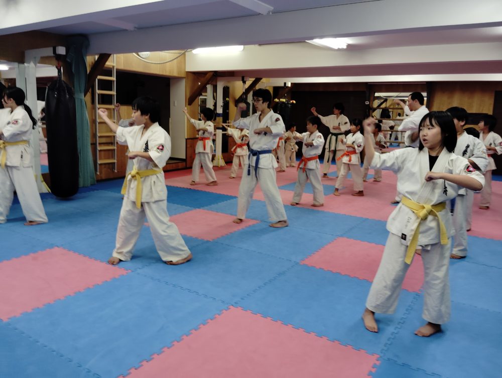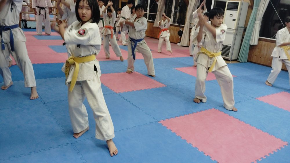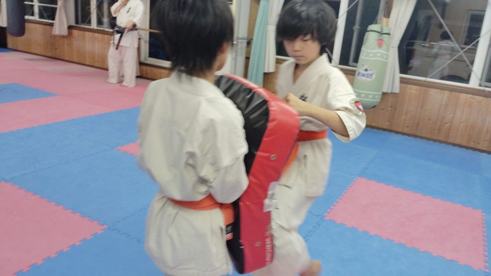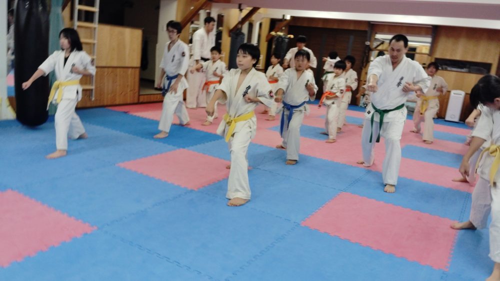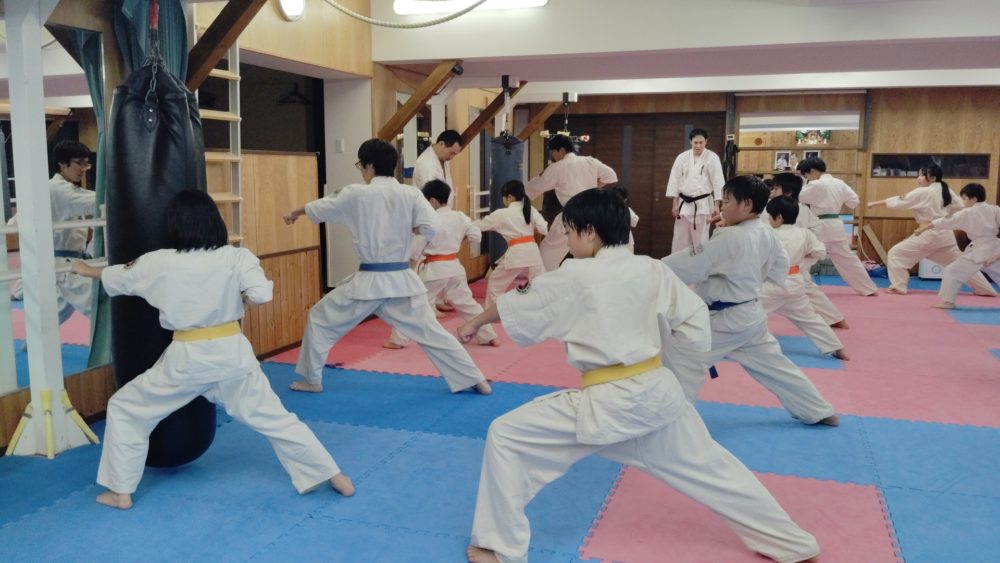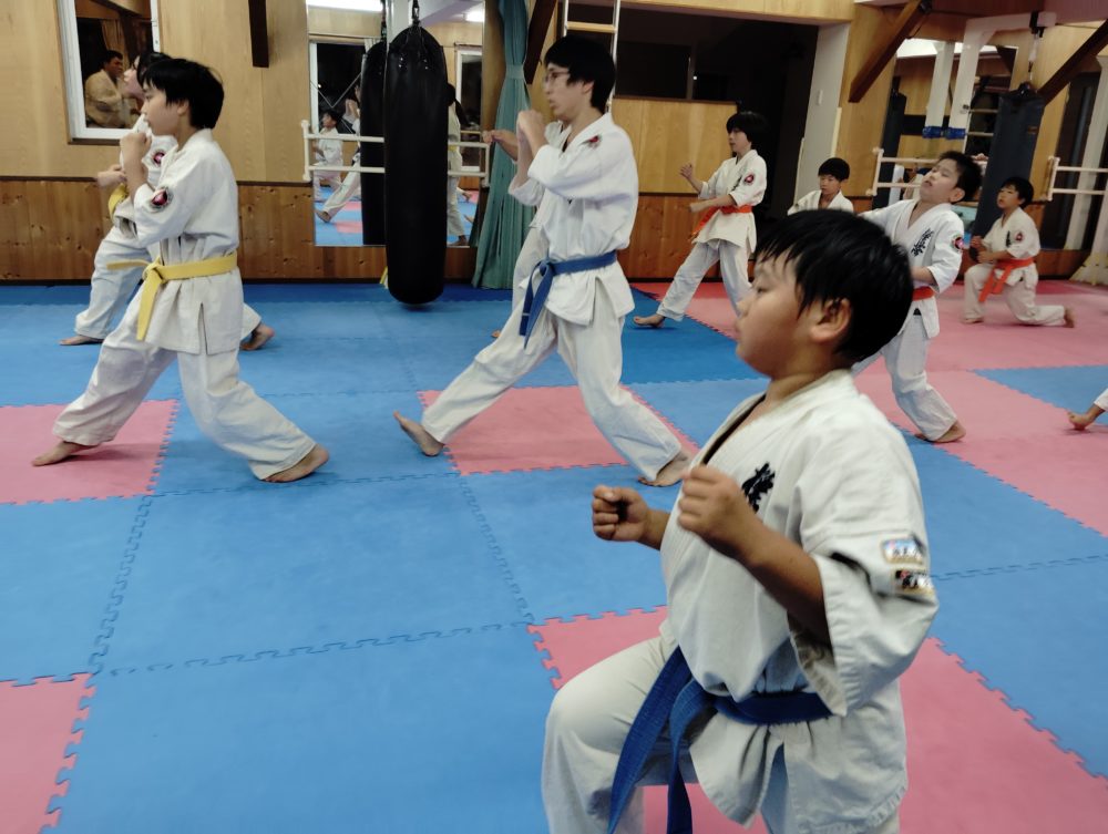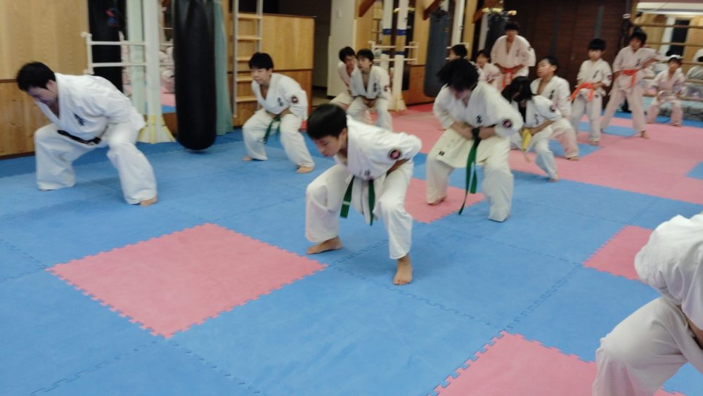 前屈立ちの移動、順突きから逆突き、受けからの逆突き。