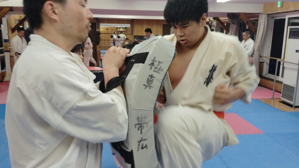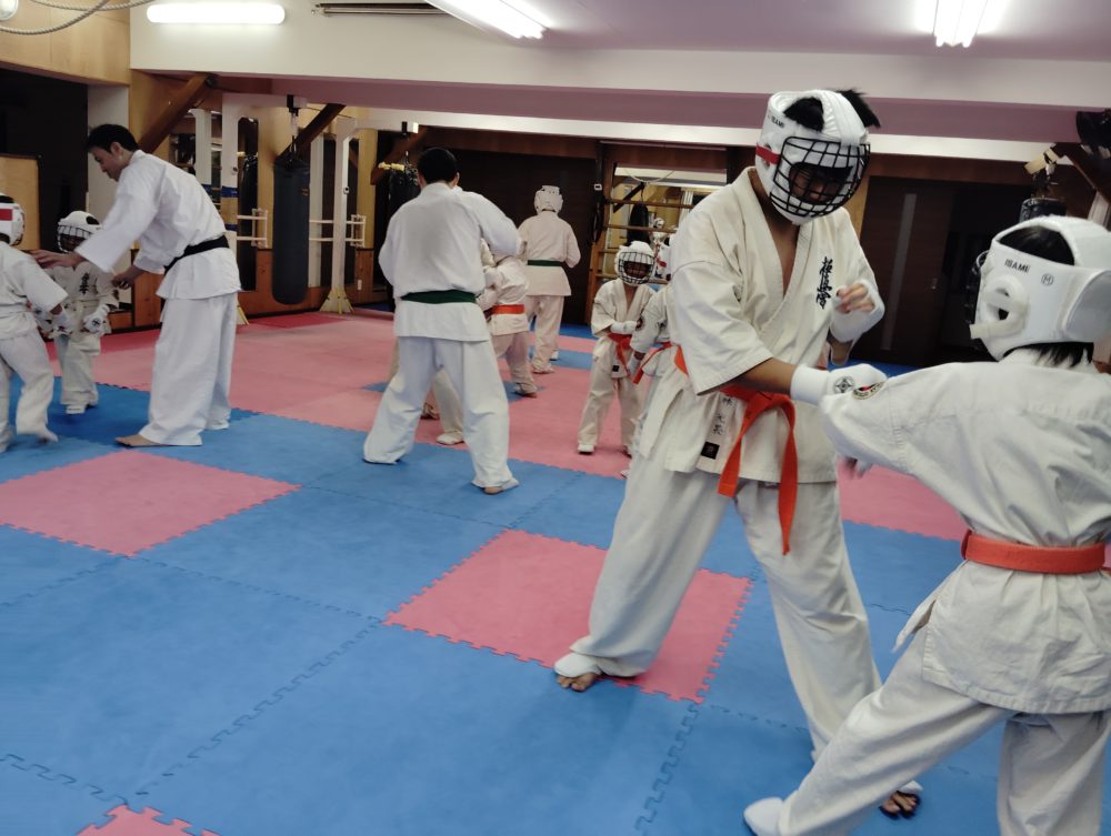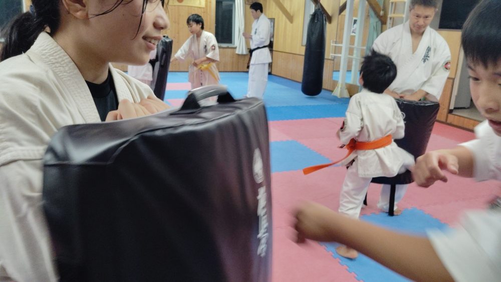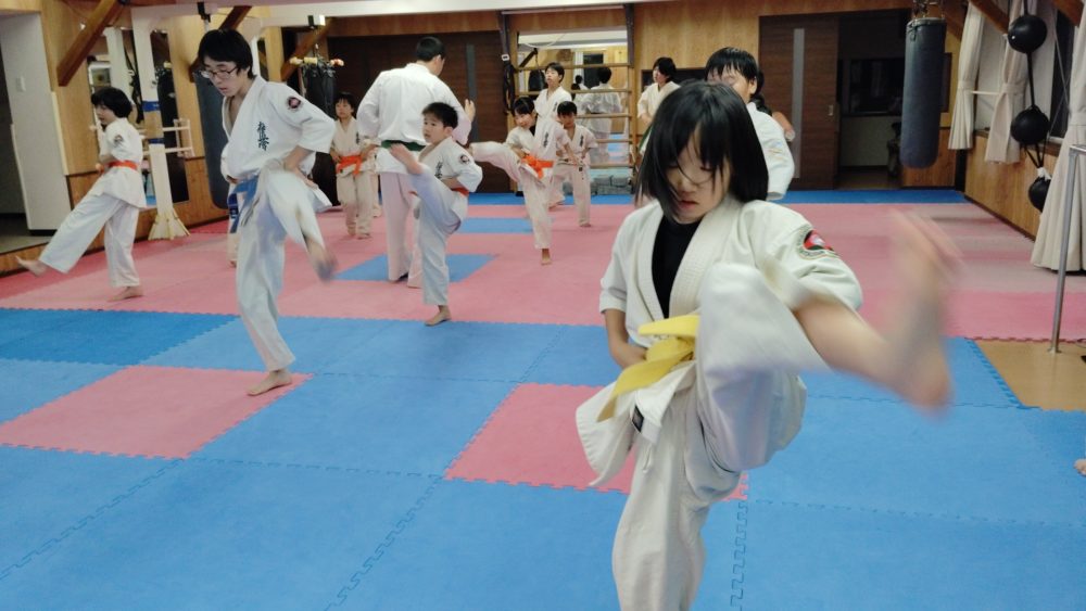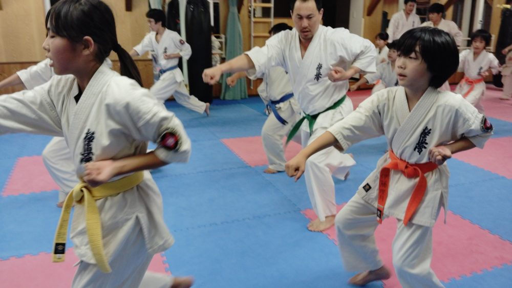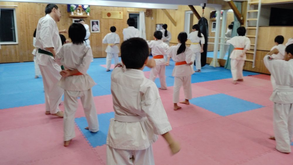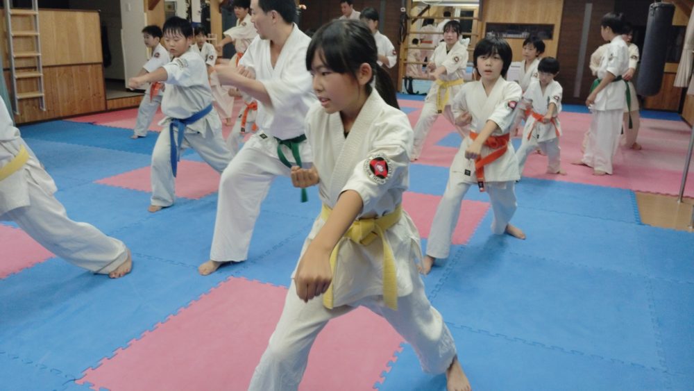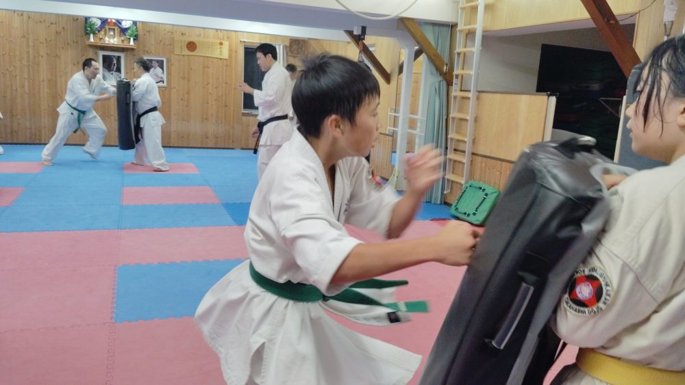 前屈立ちの移動、順突きから逆突き、受けからの逆突き。