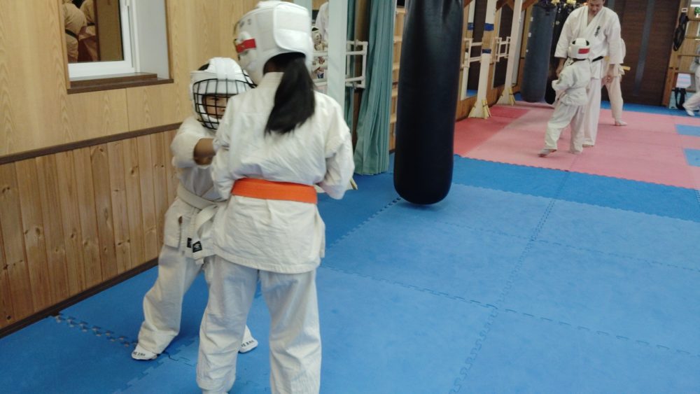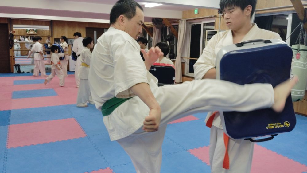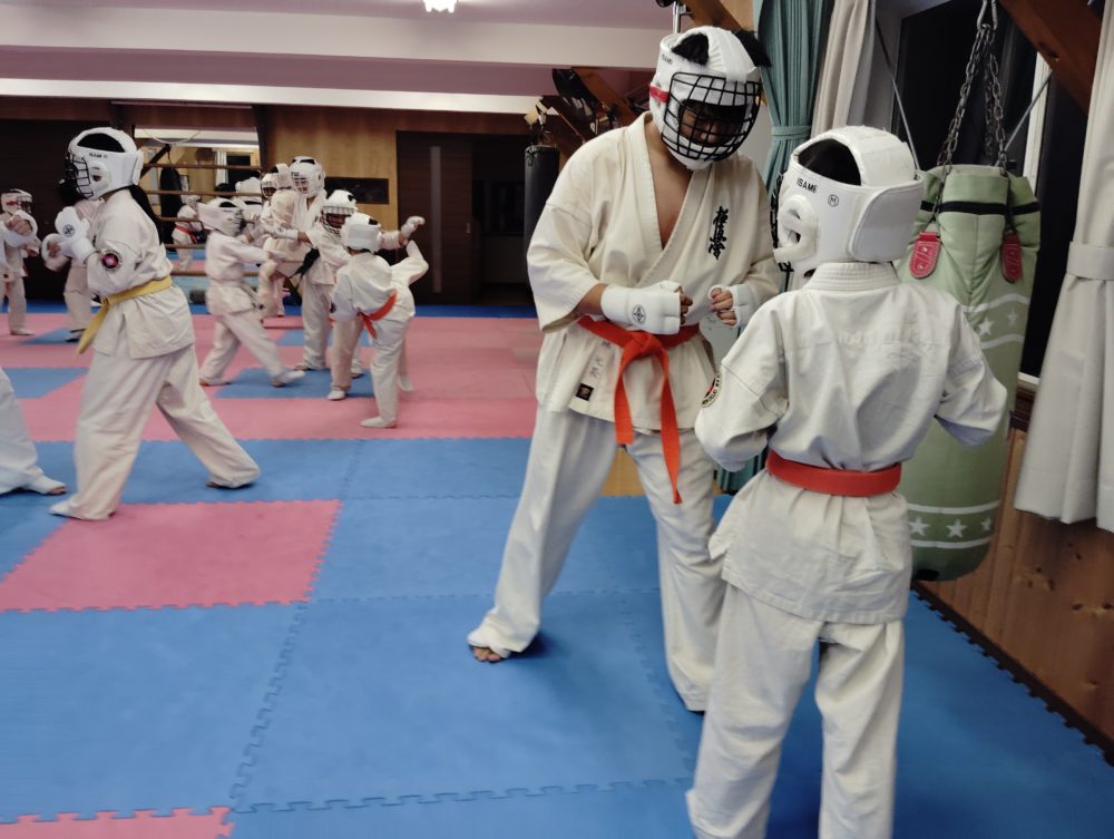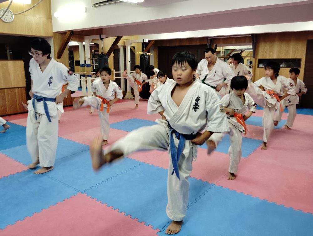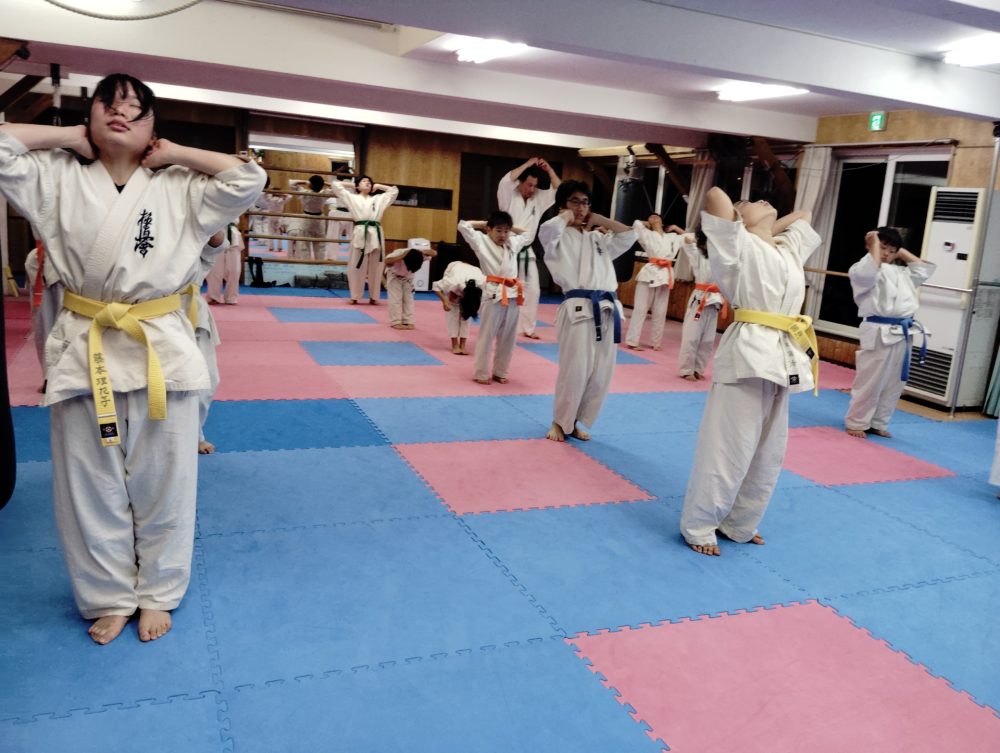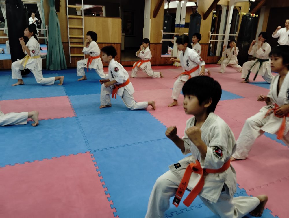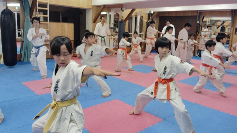 前屈立ちの移動、順突きから逆突き、受けからの逆突き。