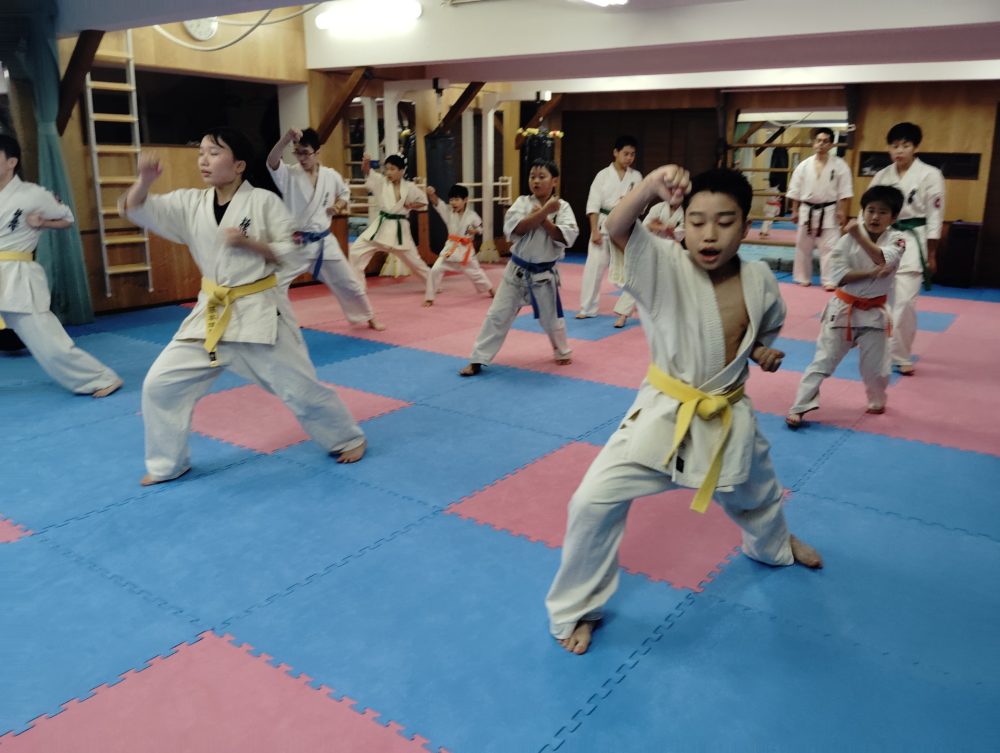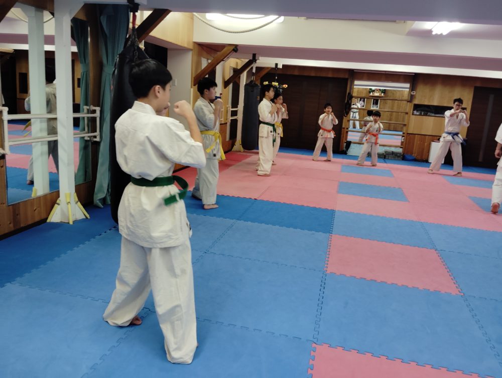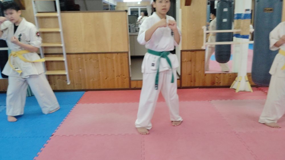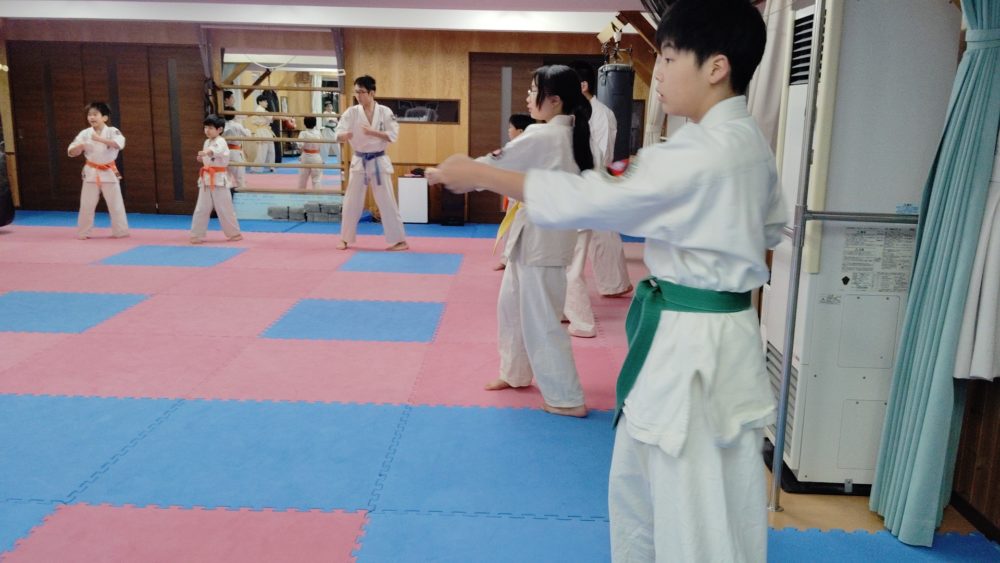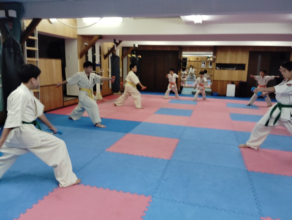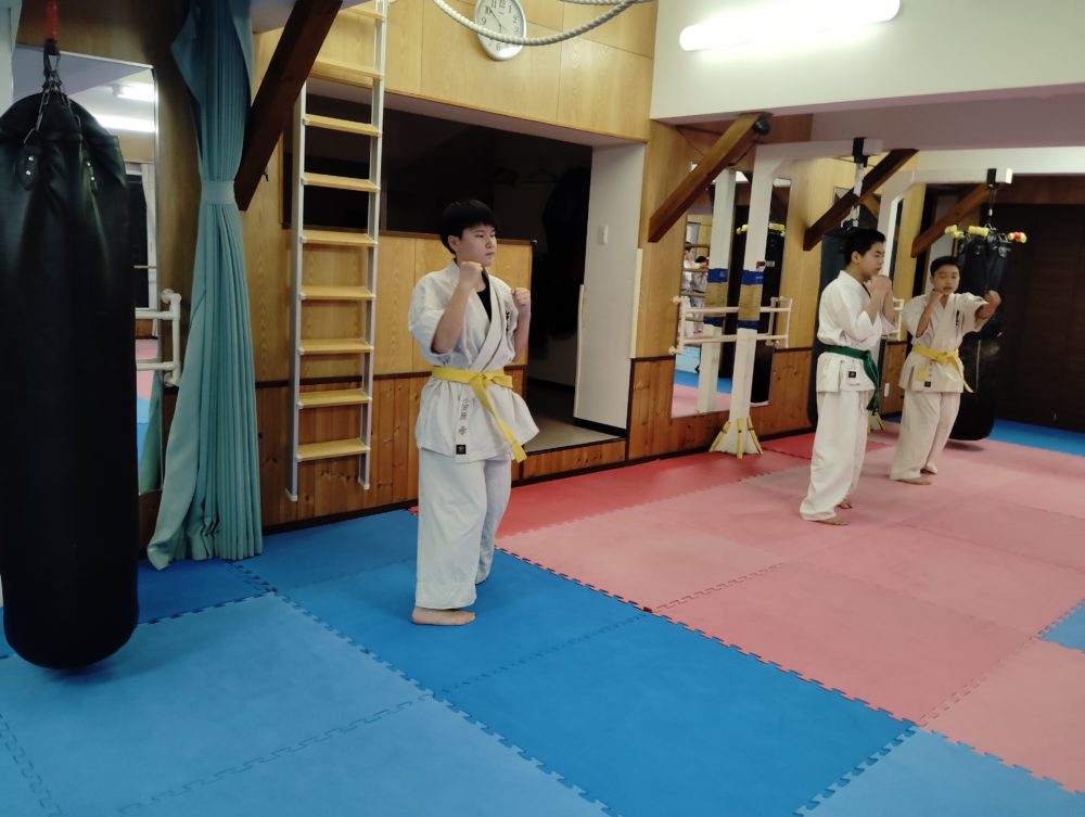 基本稽古、三戦立ちでの正拳中段突き。
