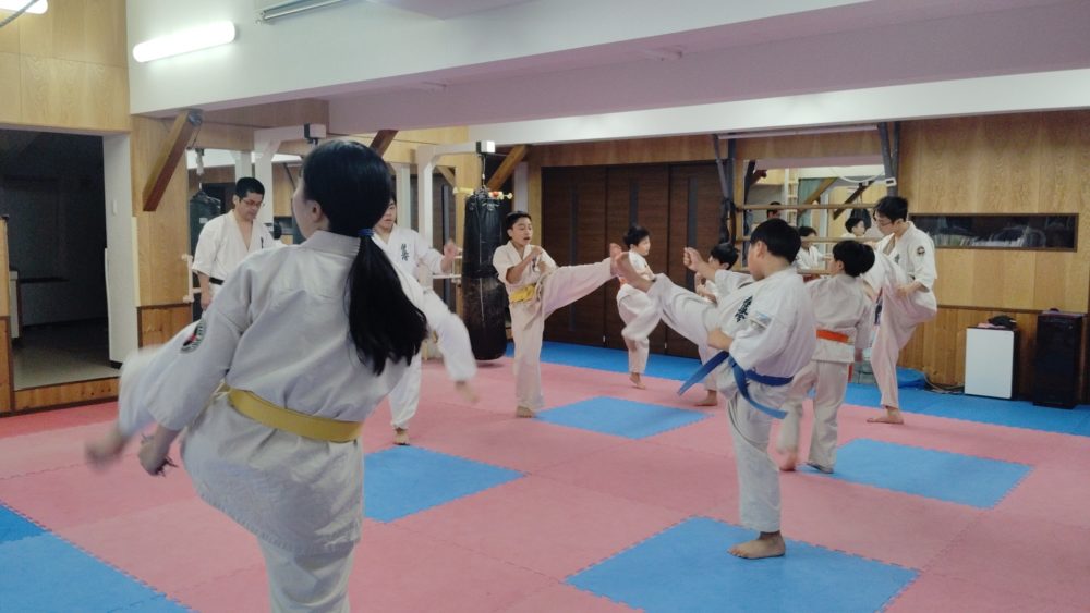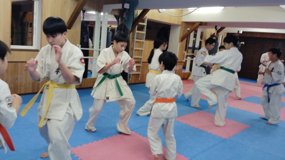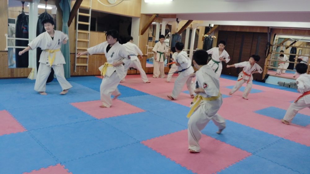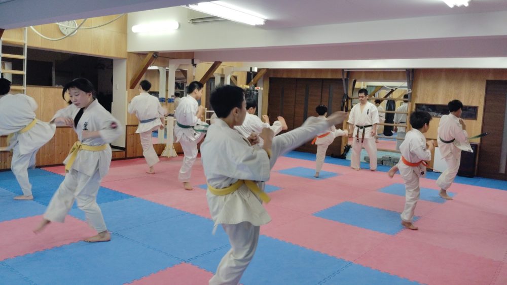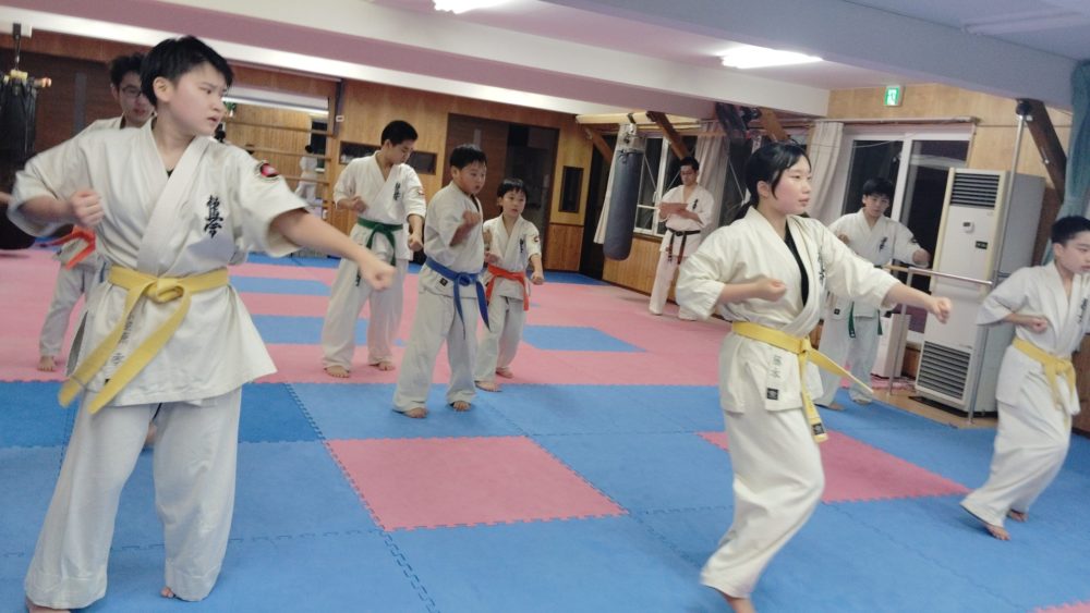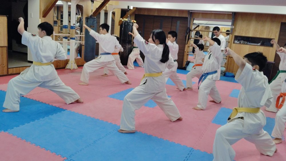 基本稽古、三戦立ちでの正拳中段突き。