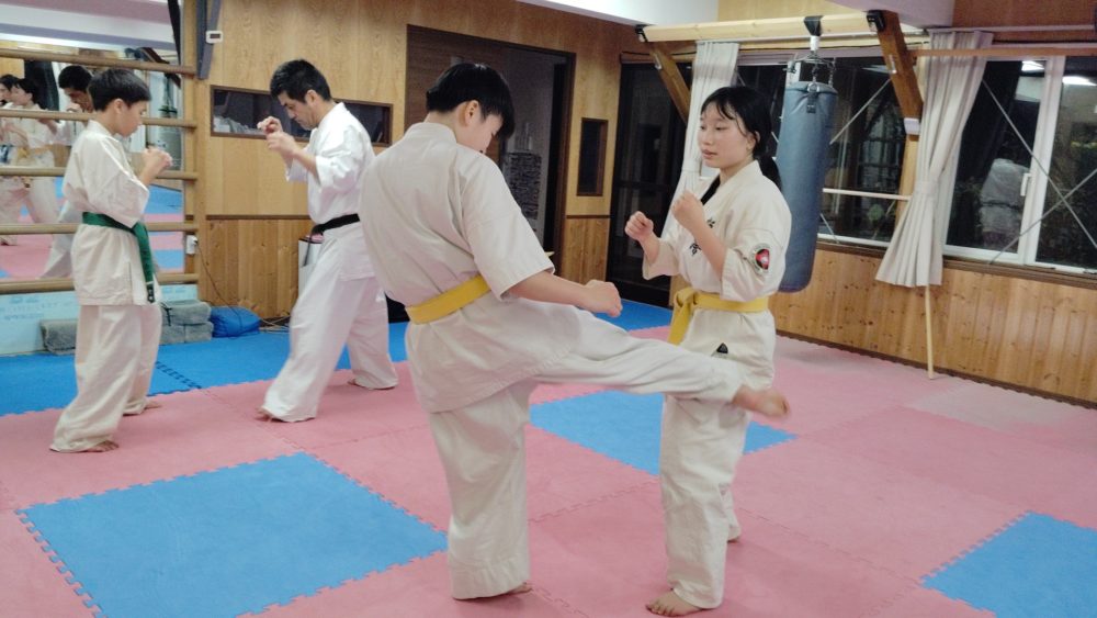 前蹴りの次は廻し蹴り。