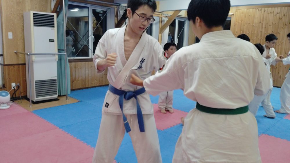 サポーター無しの軽い組手を行います。