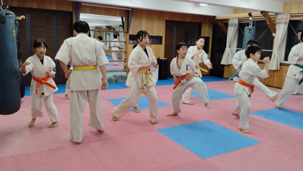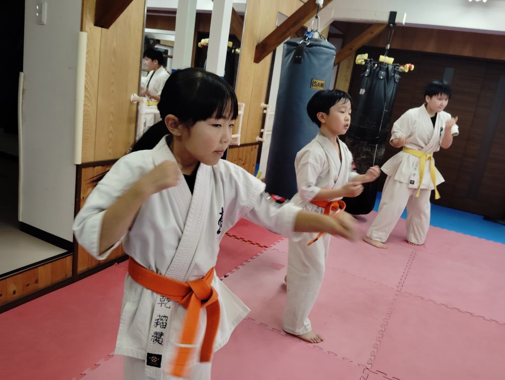 基本稽古、三戦立ちの正拳中段突きから。