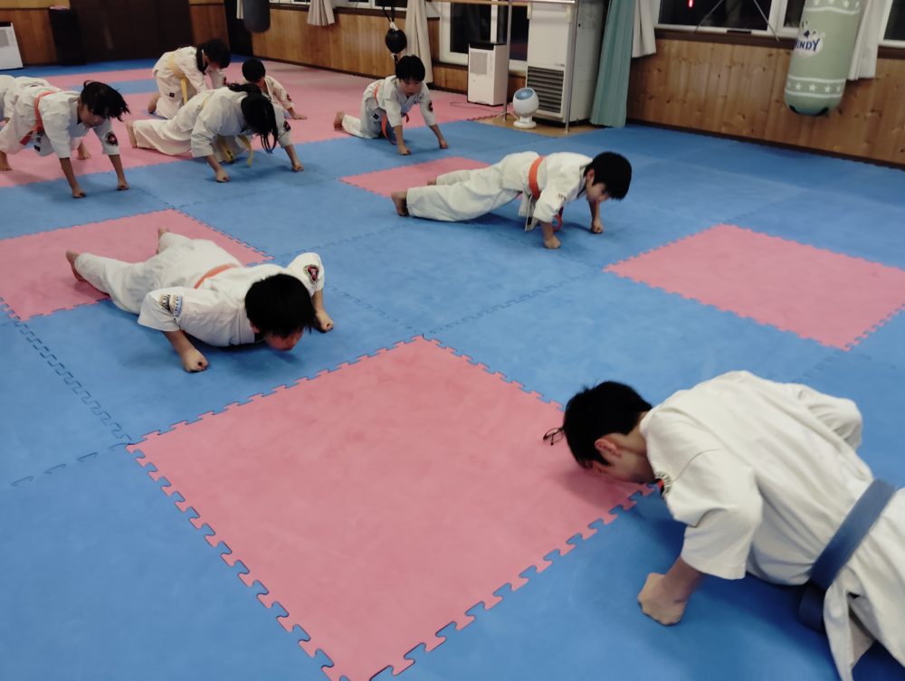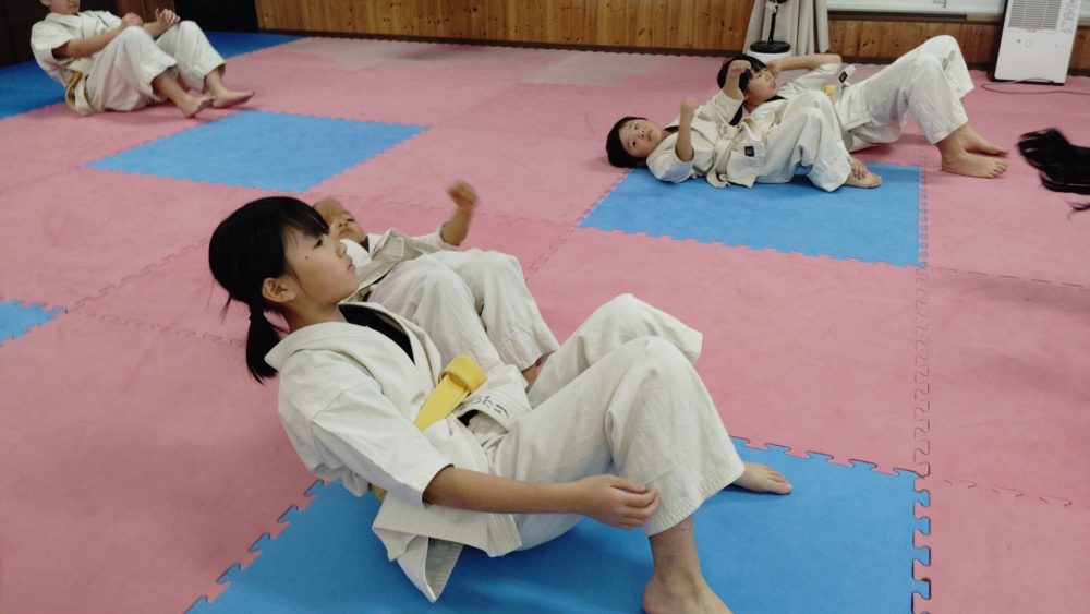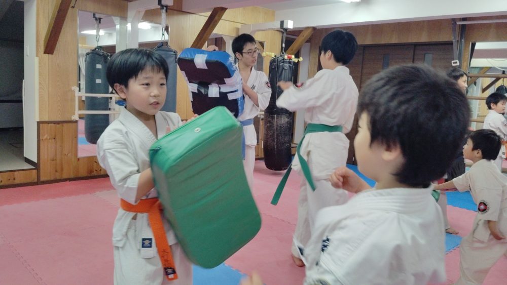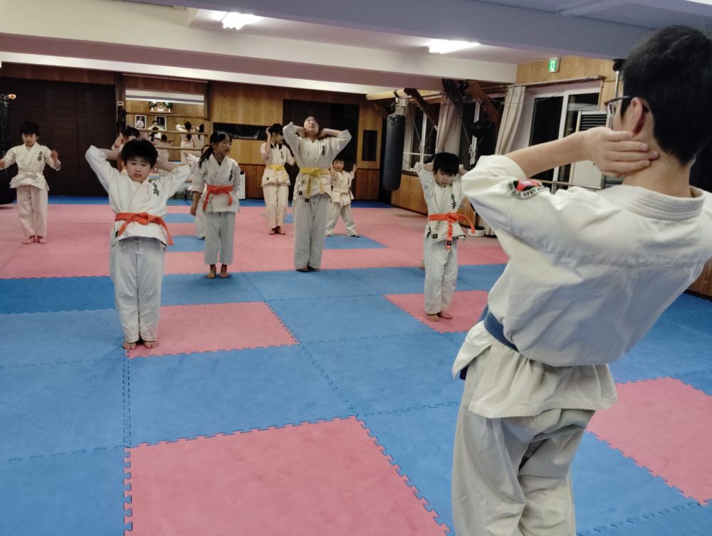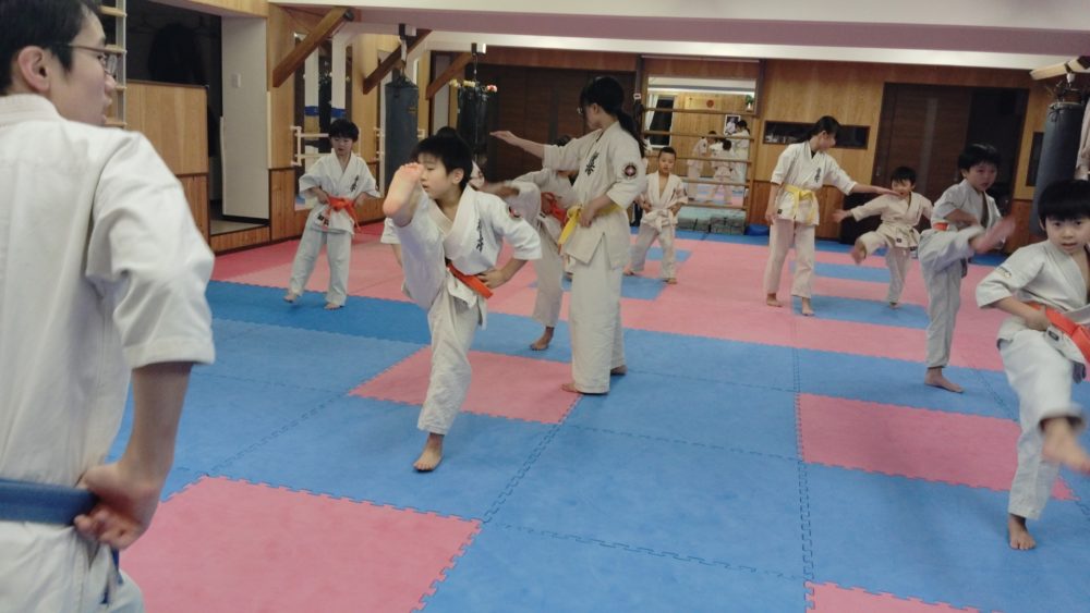 後ろ蹴り。しっかり蹴れるまで何度もやり直します。