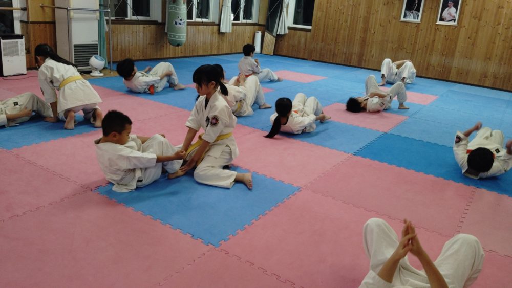 道場内を暖めながら、縄跳びで身体も暖めます。そして同時に稽古にもなります。