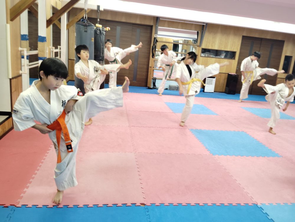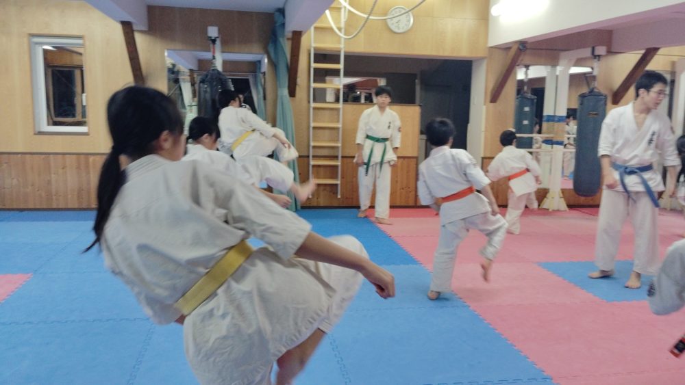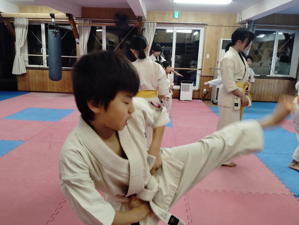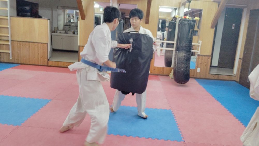 稽古終了後の自主練、中段廻し蹴りを続けます。