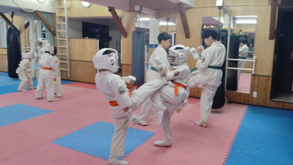 まずはしっかりパンチを打ってから蹴りに繋ぎます。
