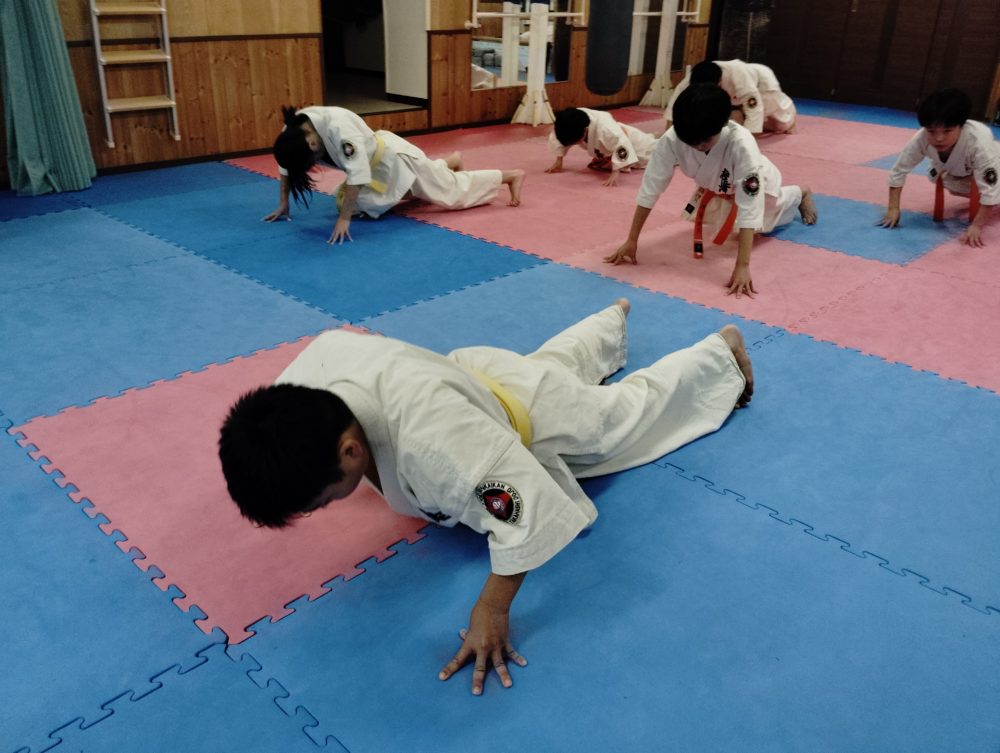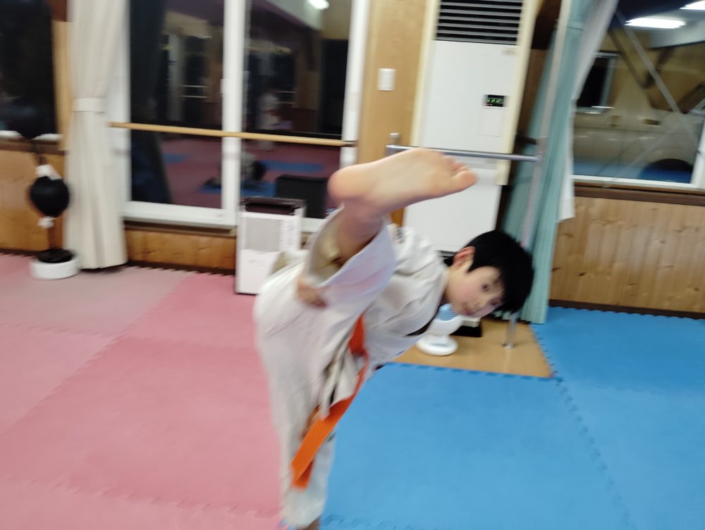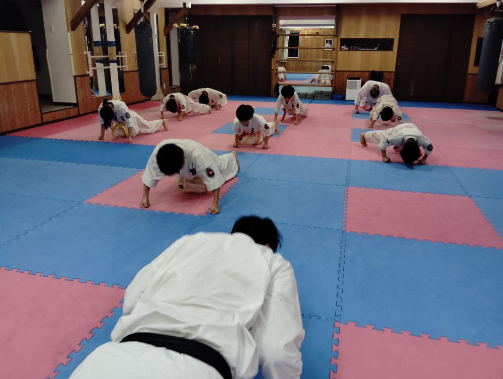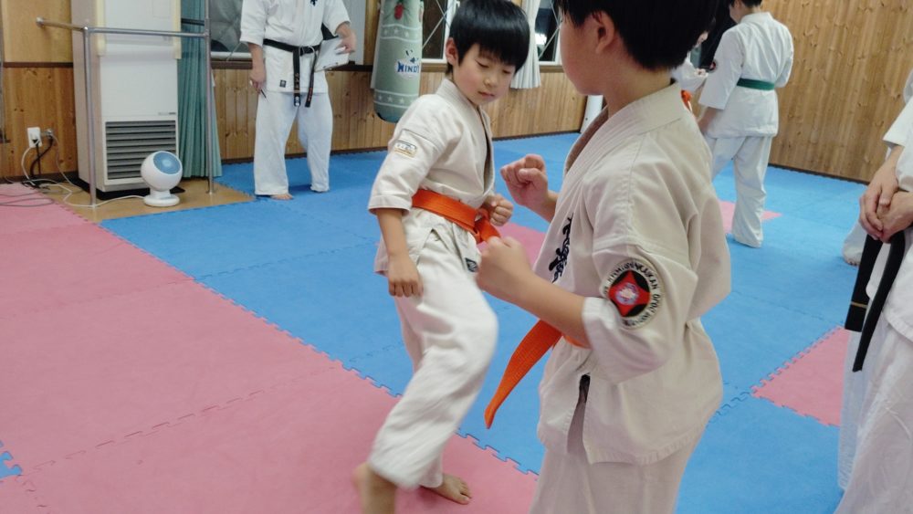 オレンジ帯は手刀回し受けを繰り返し稽古します。