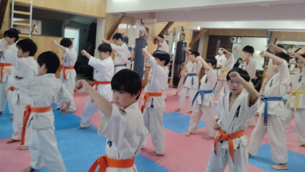 基本稽古から行います。正拳突きから。