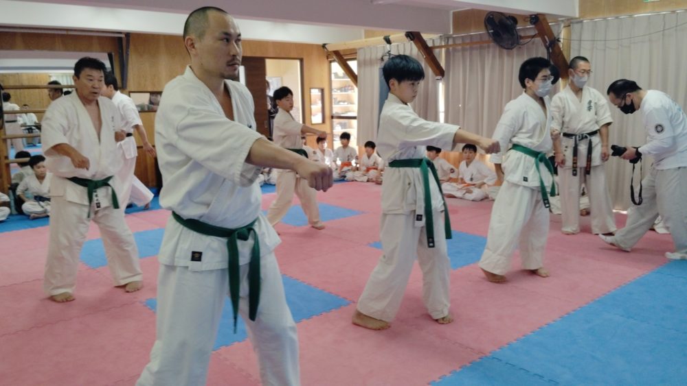 緑帯の移動稽古。三戦立ちの移動。