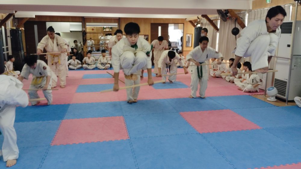 基礎体力テスト、棒跳び。