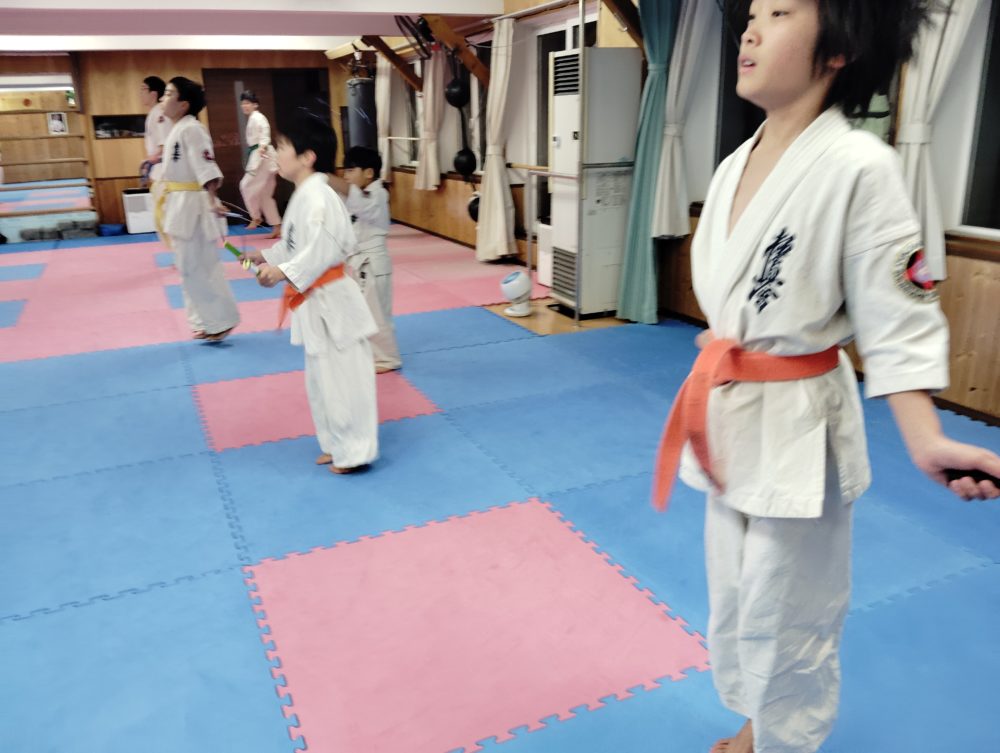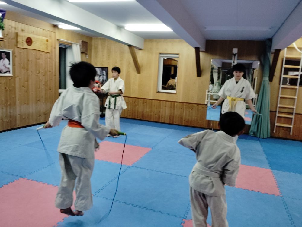 稽古の始めに縄跳びをするとウォーミングアップにもなって良いと思います。