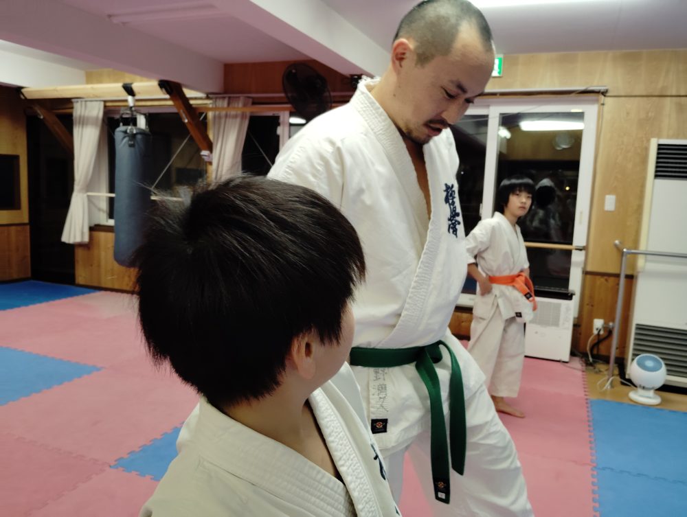 下突きの距離感もつかみます。