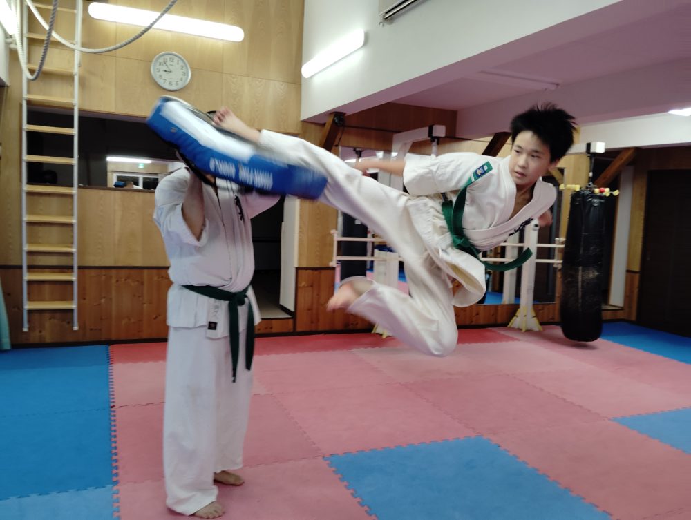 最初の廻し蹴りを高く。