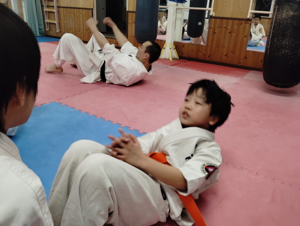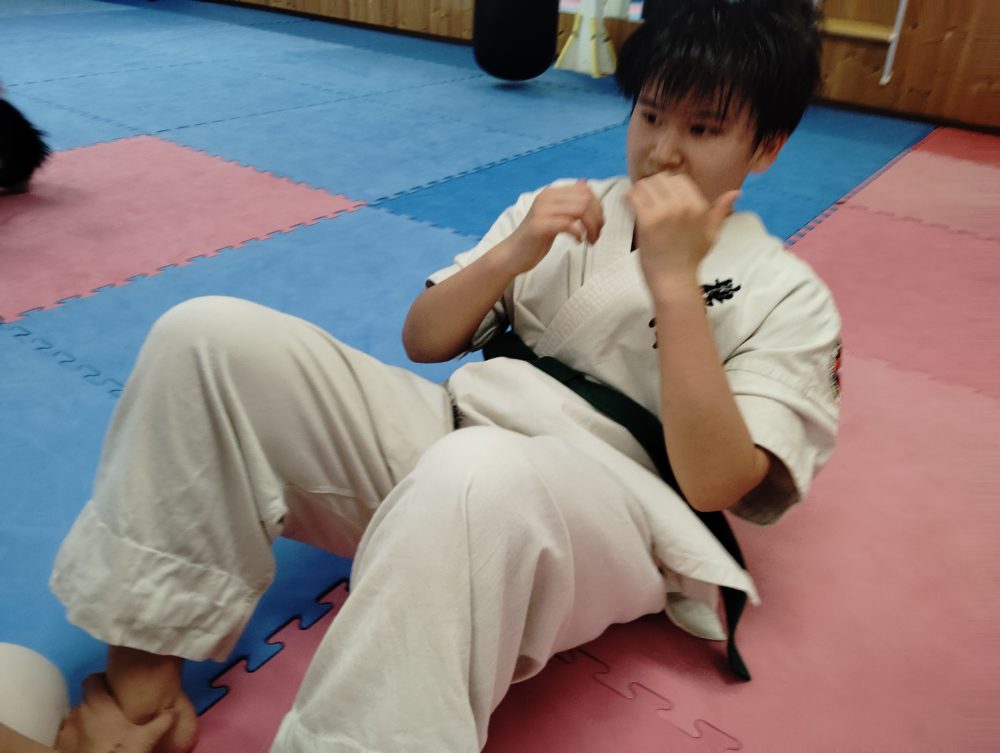 終了後の自主練、腹部を強化します。