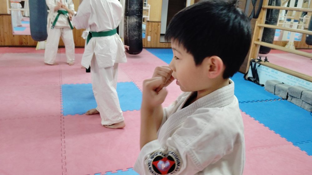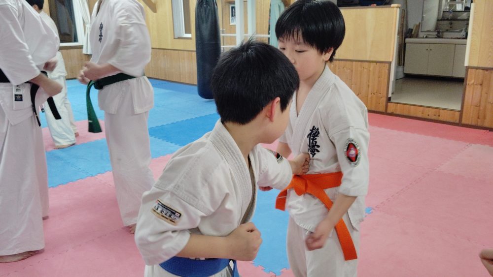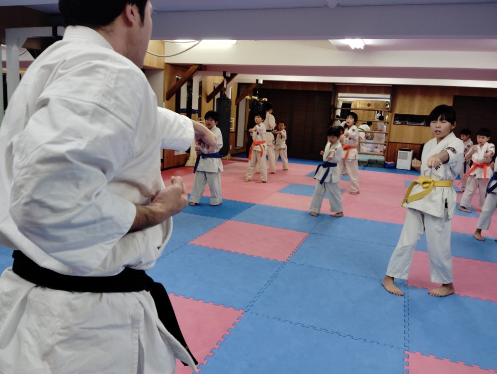 基本稽古は、正拳中段突きから。
