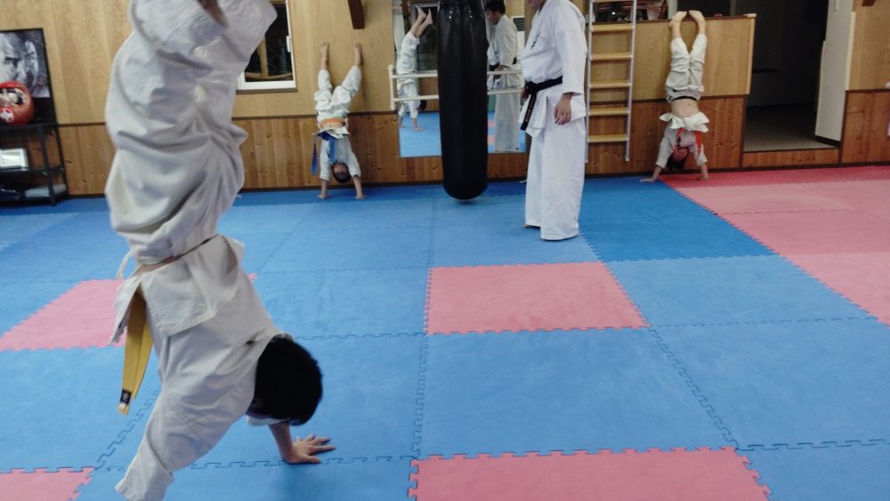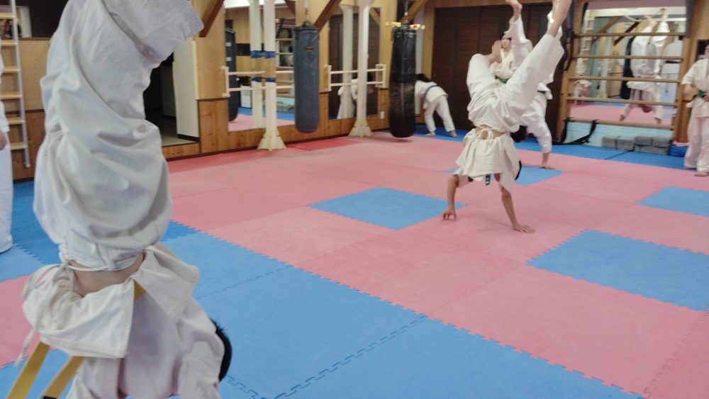 補強稽古の一環、倒立歩行。