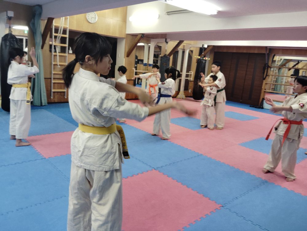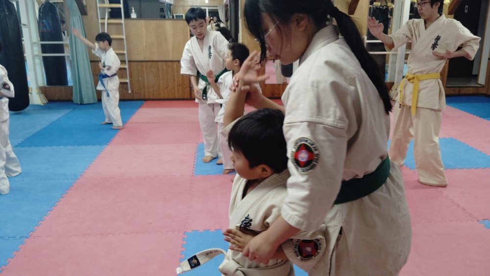 黄色帯の先輩が前を向いて行います。