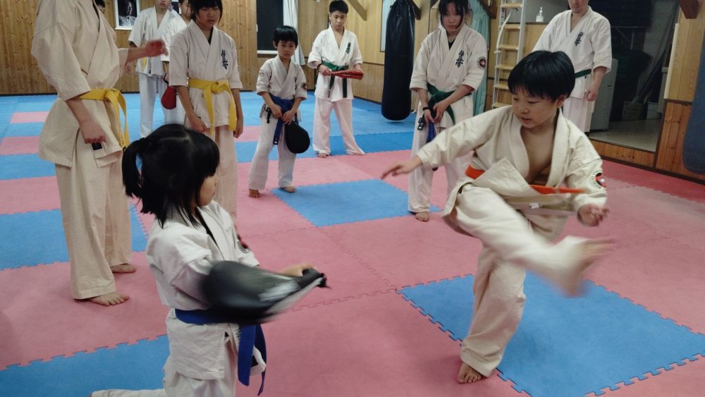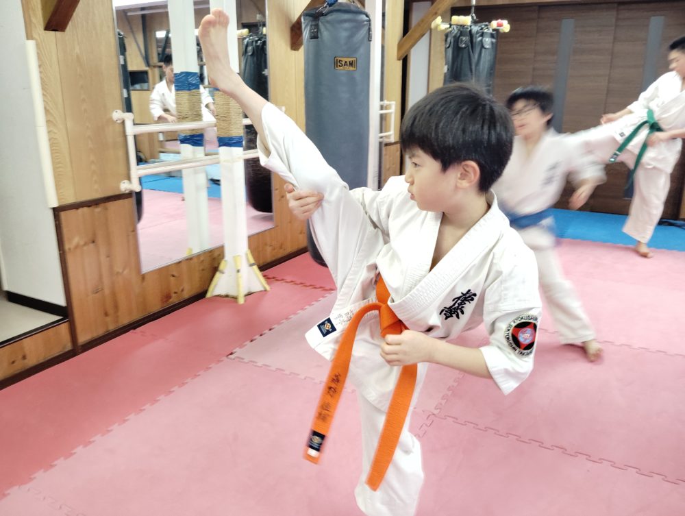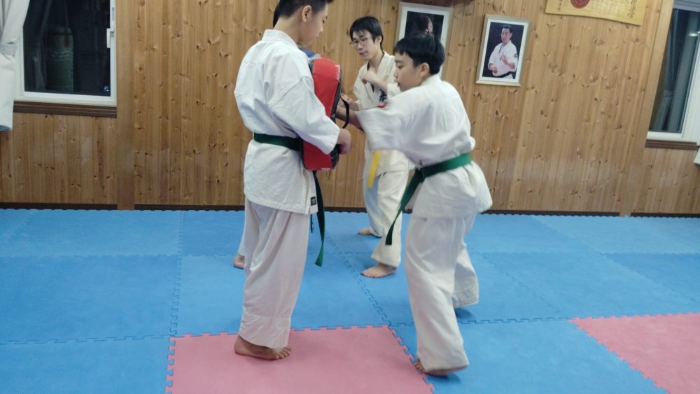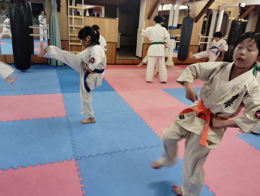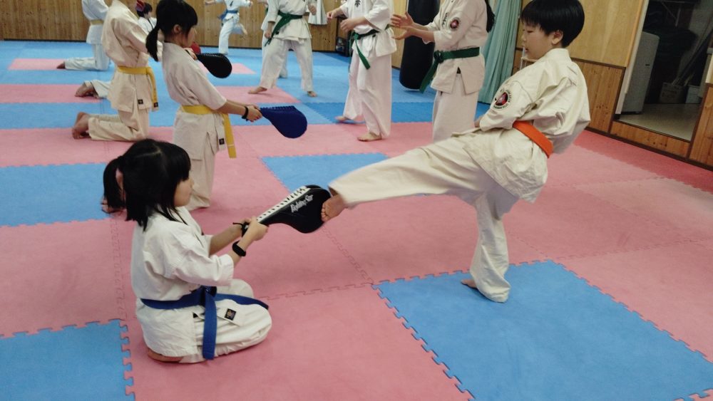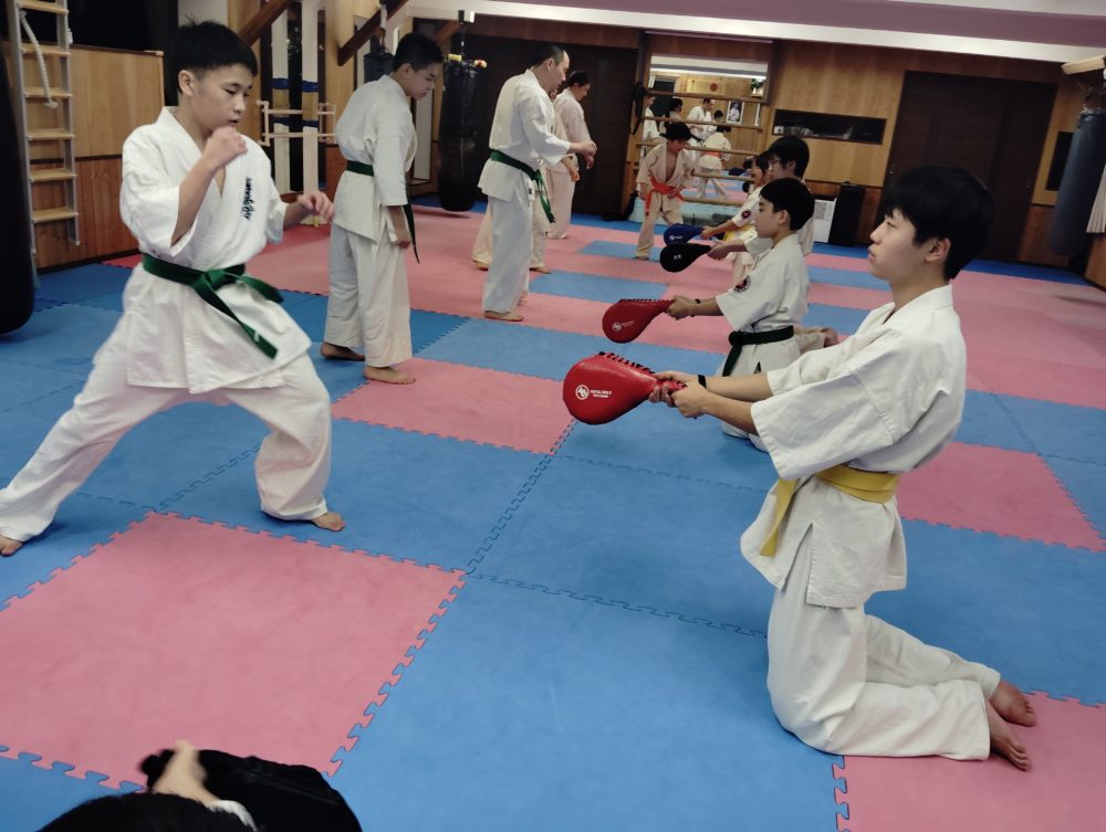 上段廻し蹴り、後ろ廻し蹴り、内蹴りなども稽古しました。