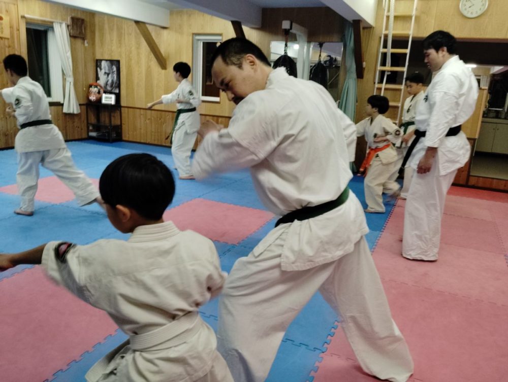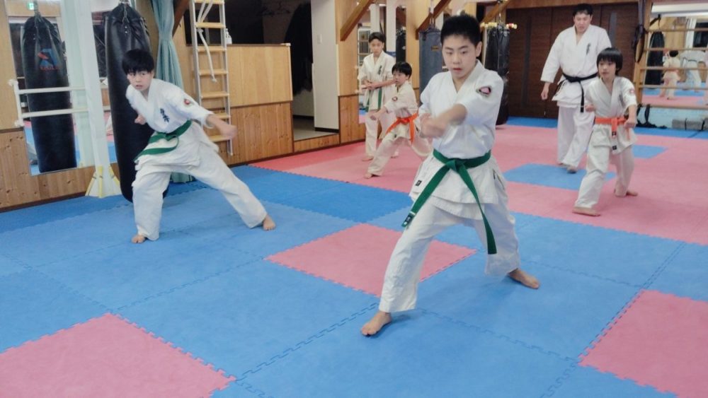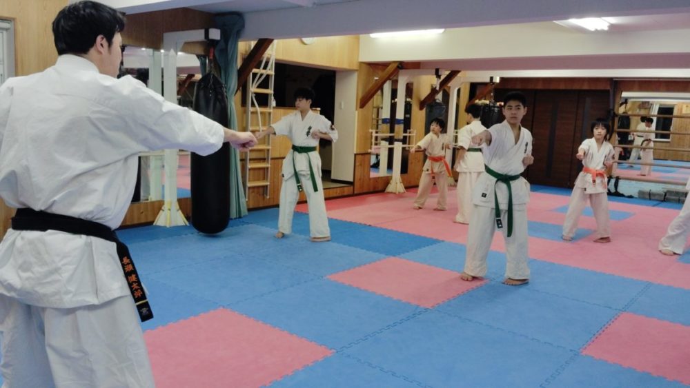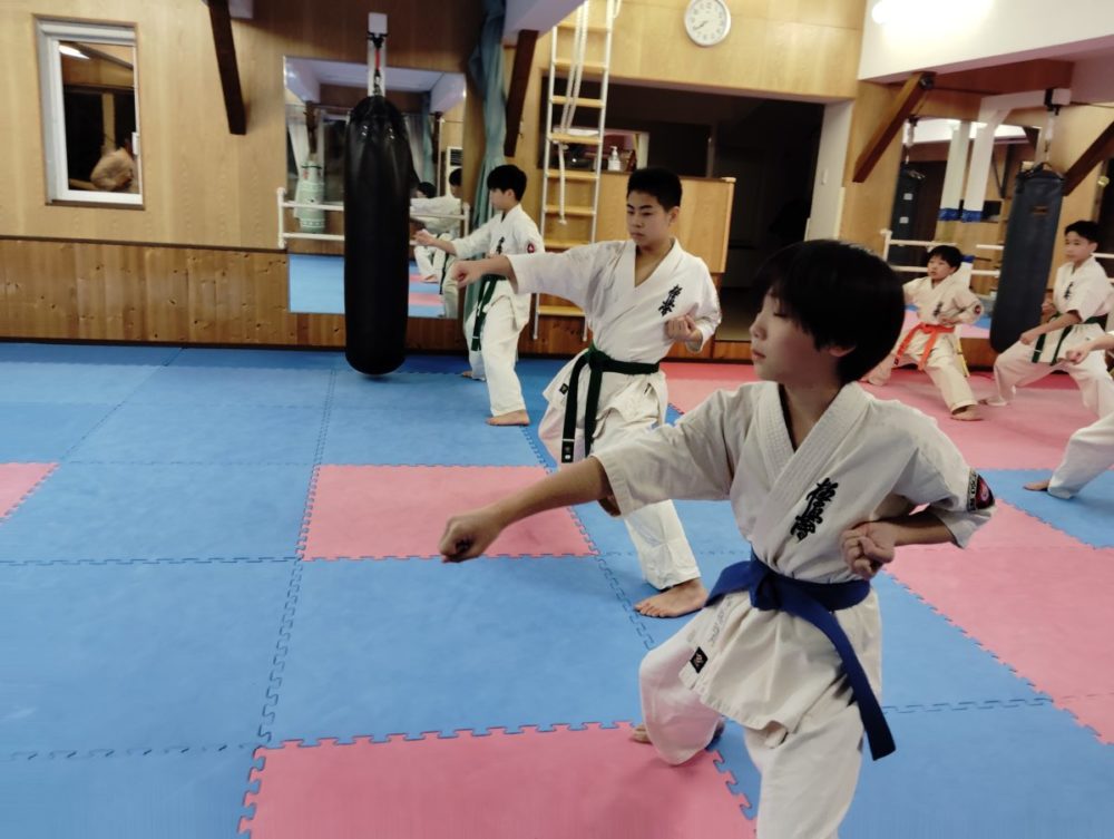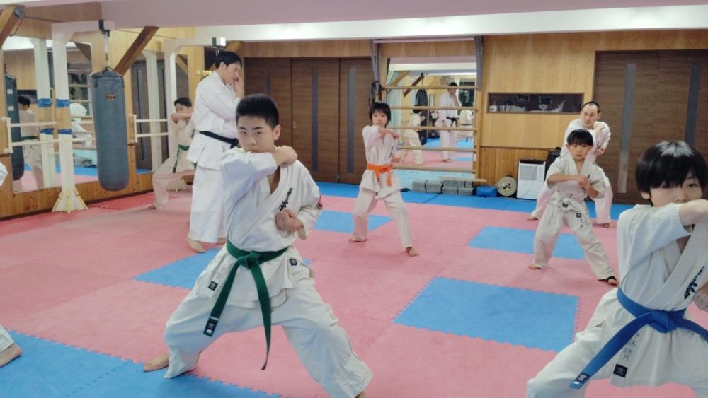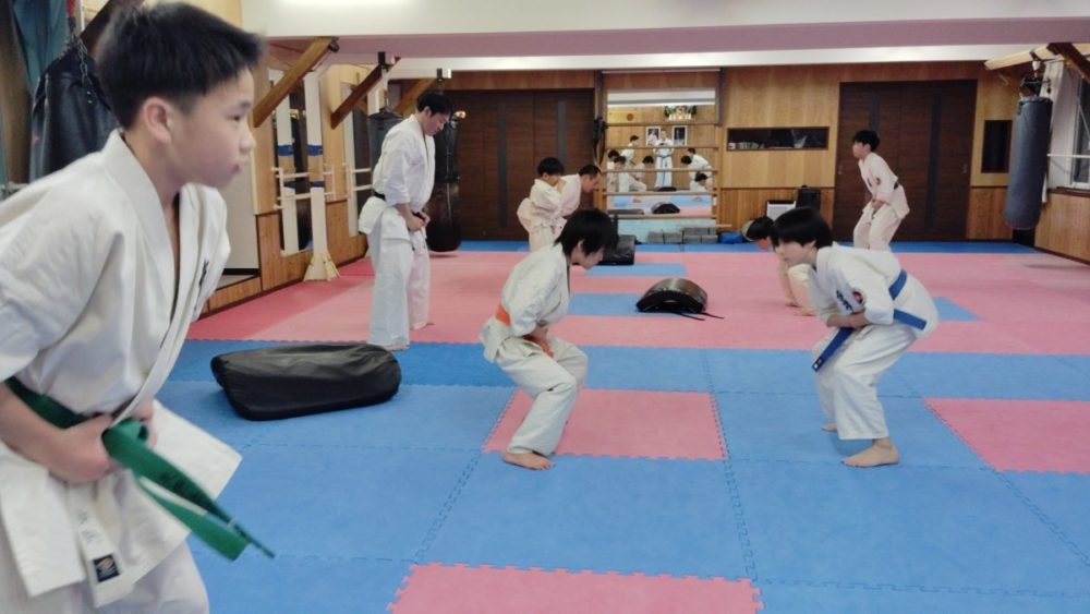 基本稽古、騎馬立ち正拳中段突き。