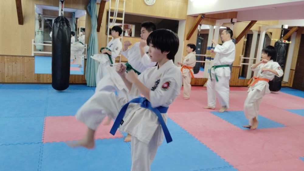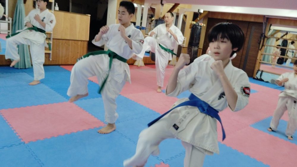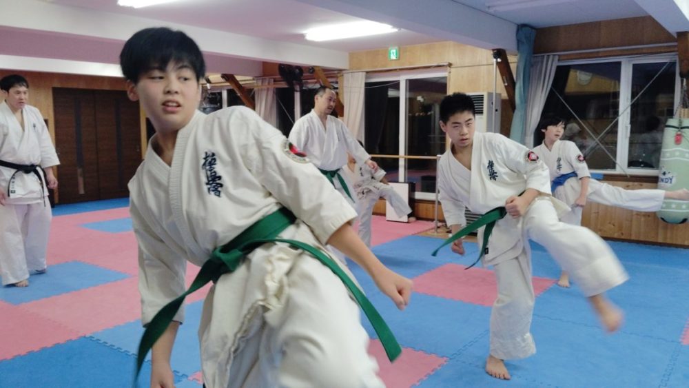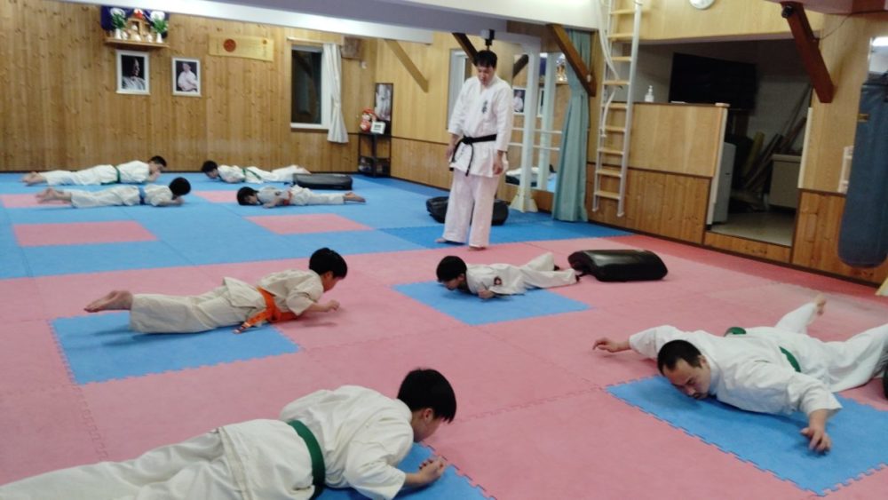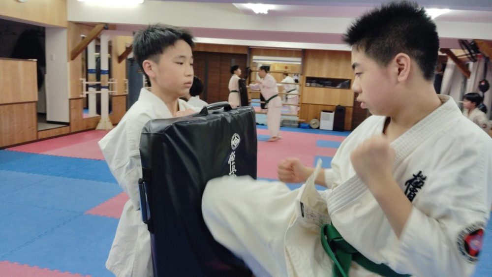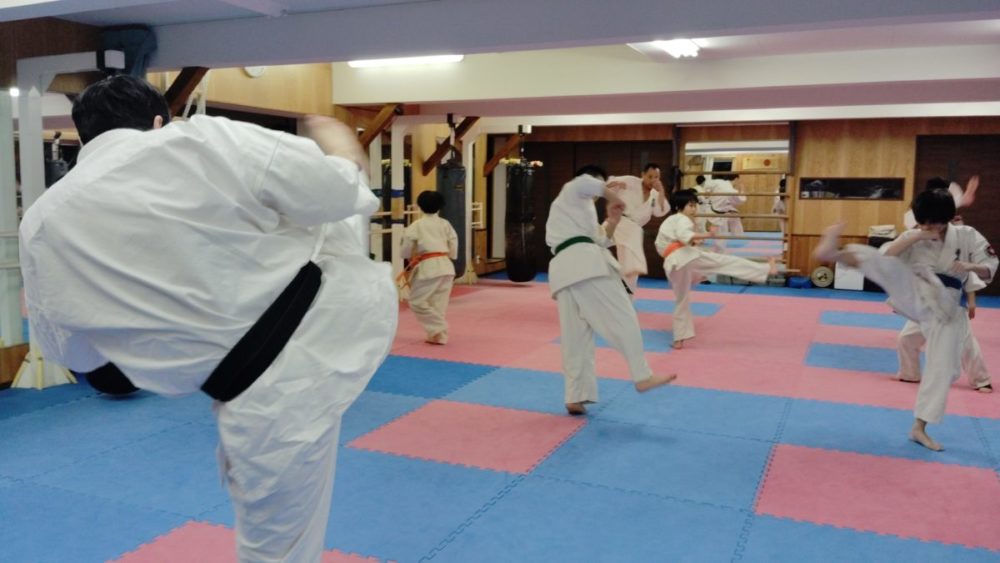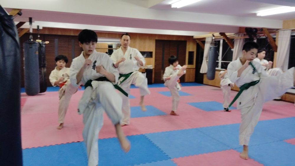 基本稽古、騎馬立ち正拳中段突き。