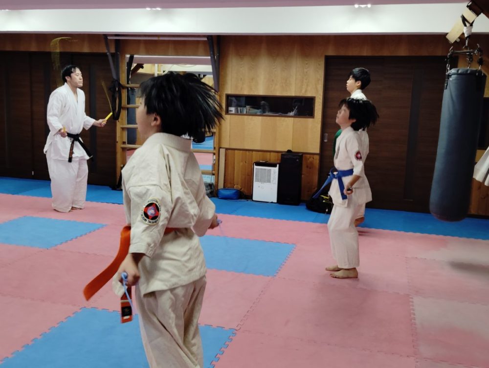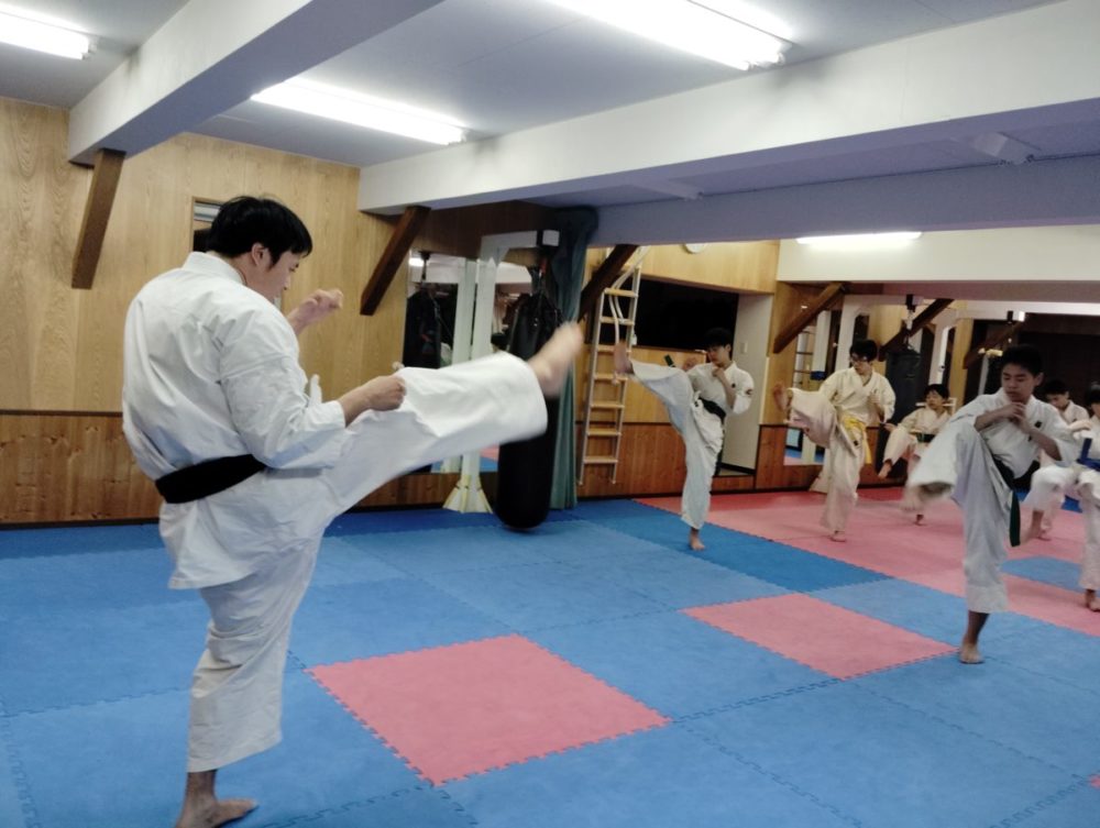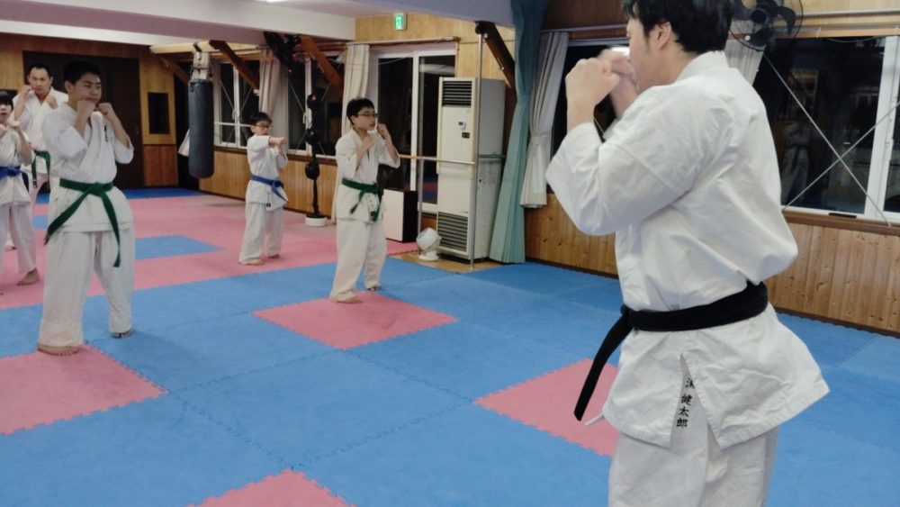 正拳中段突きから始めます。正拳顎打ち。
