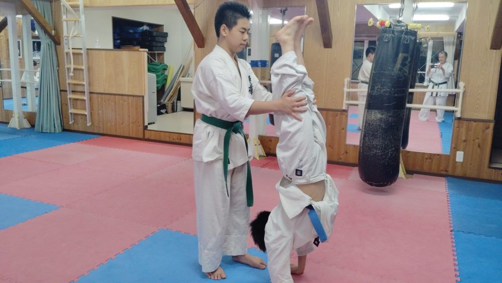 先輩に支えてもらい、支えを緩くしてもらいます。