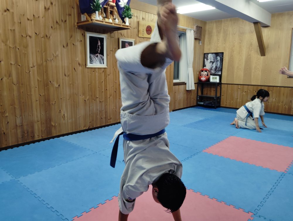 掛足立ちからの後ろ蹴りを行いました。