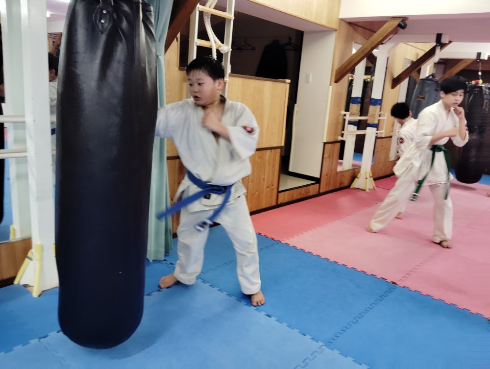 サンドバッグ稽古。