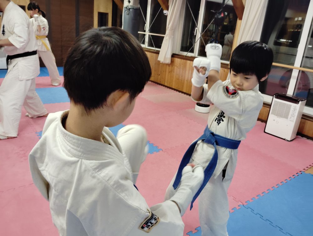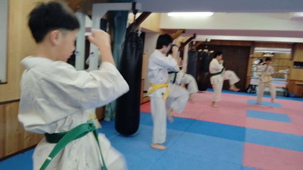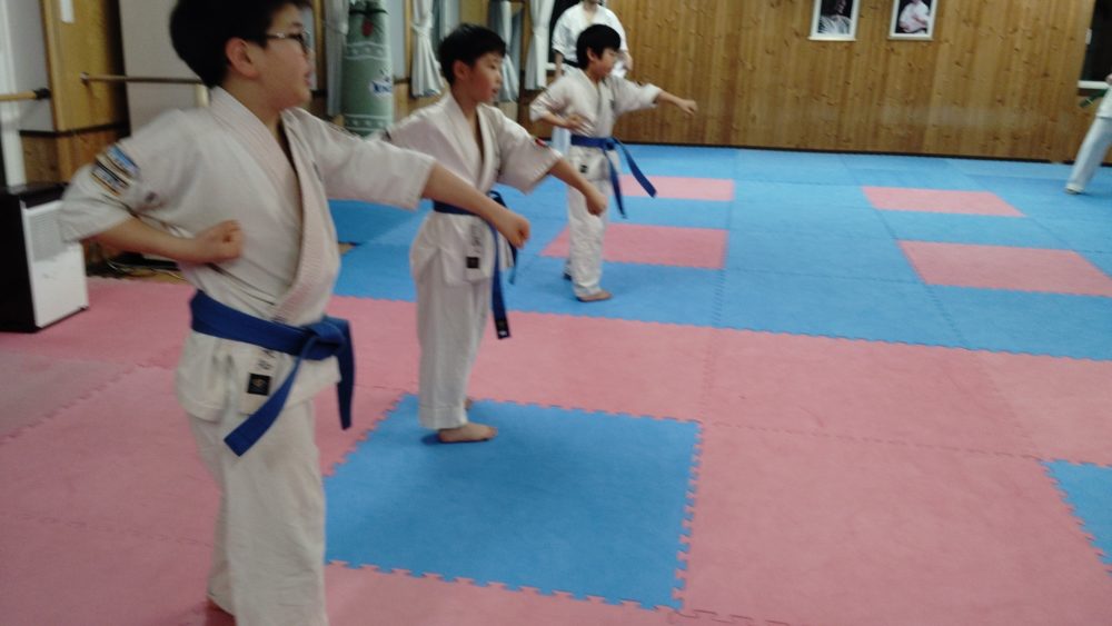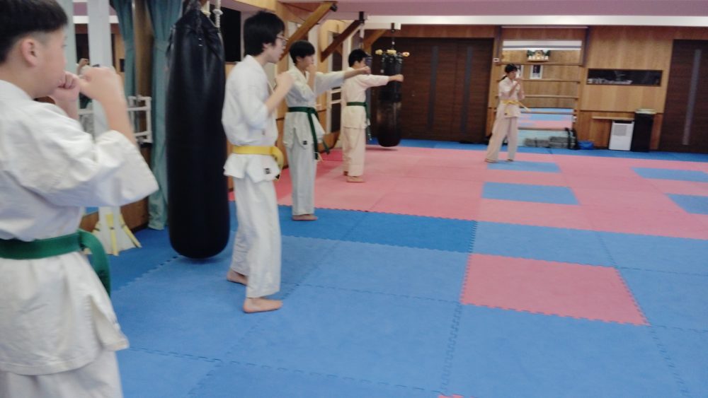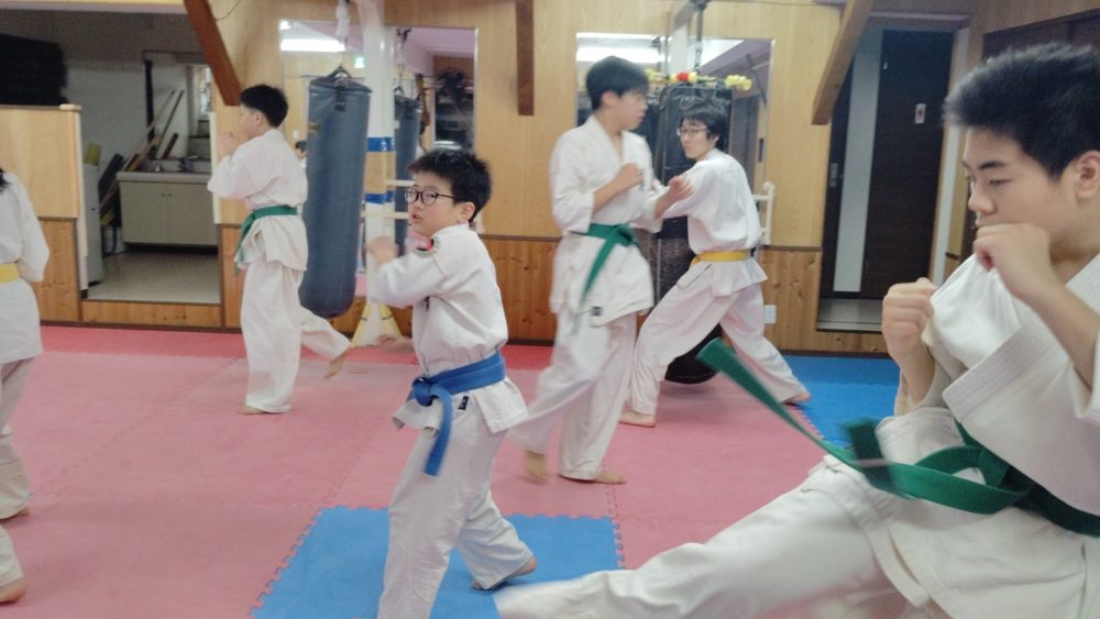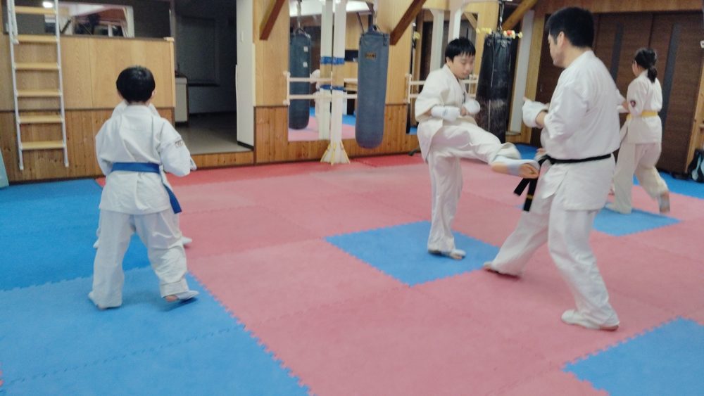 突き、蹴りから入る、受けを入れる、左右に動くなどテーマをもって行います。