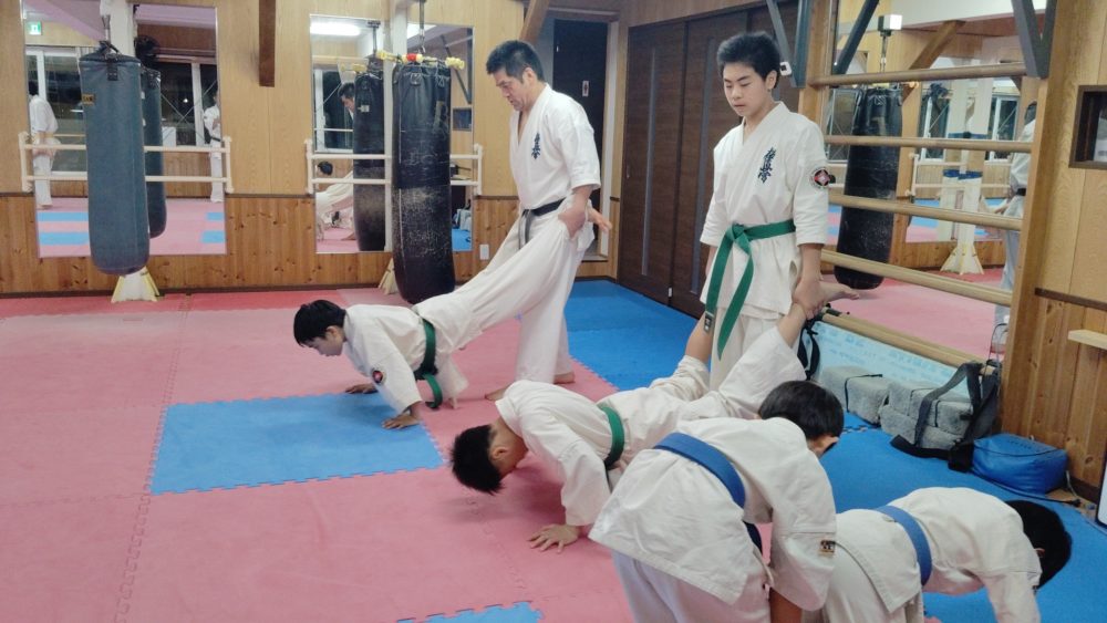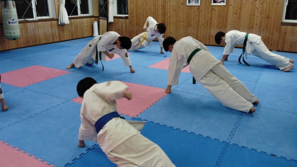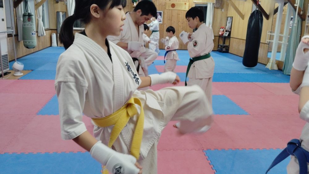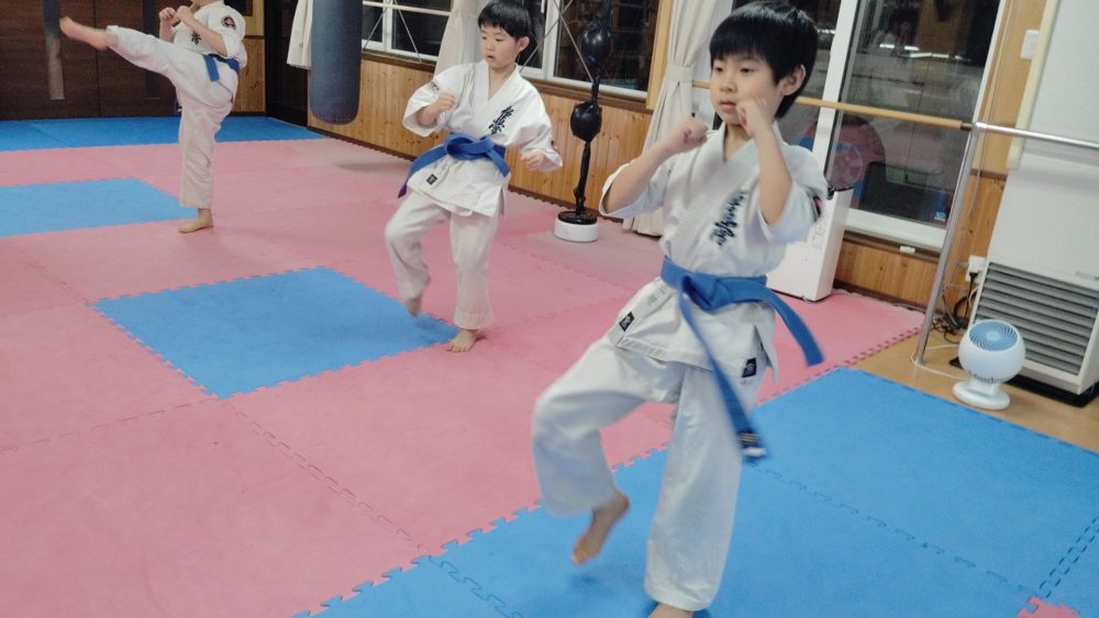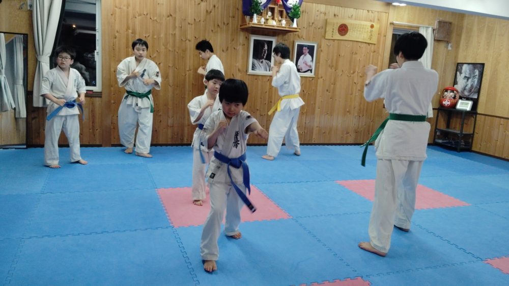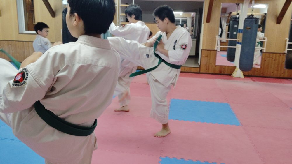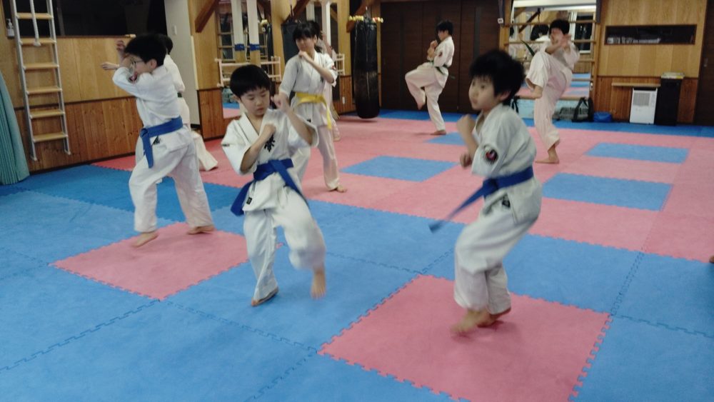 突き、蹴りから入る、受けを入れる、左右に動くなどテーマをもって行います。