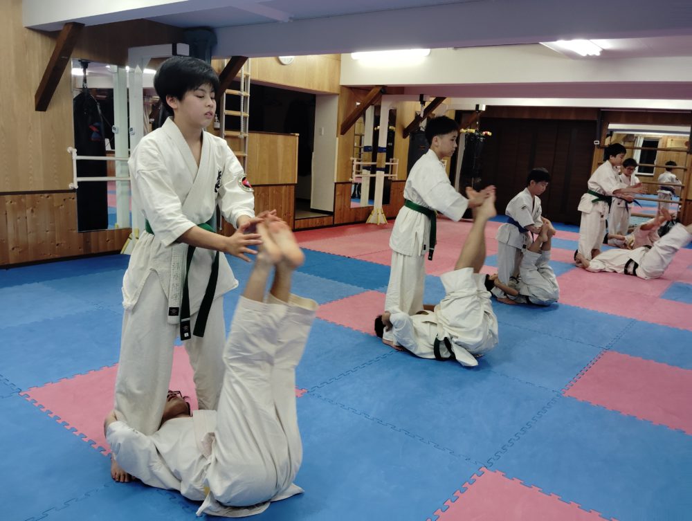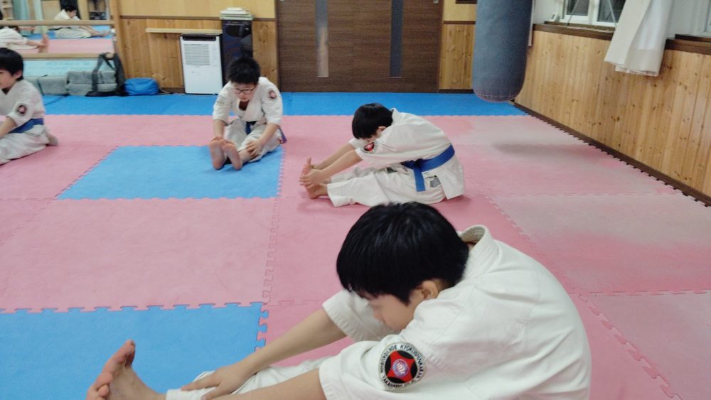 稽古終了、整理体操を行います。