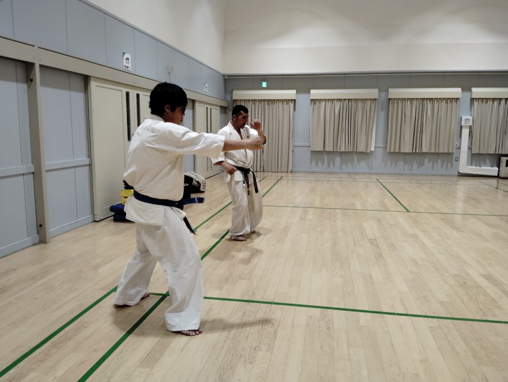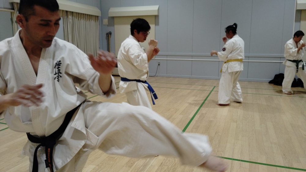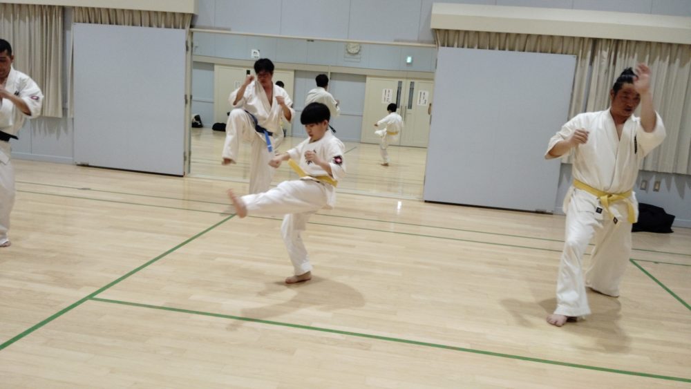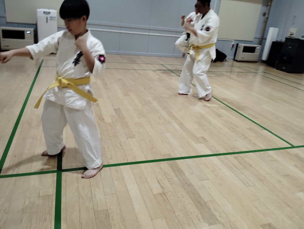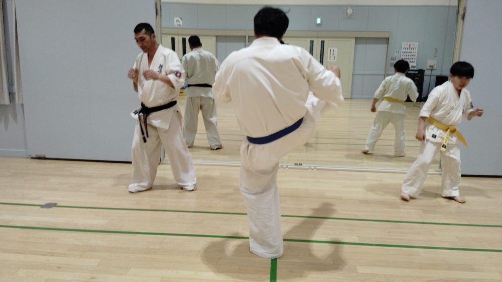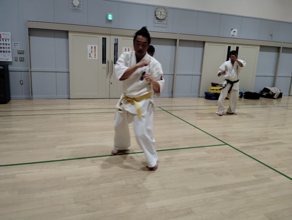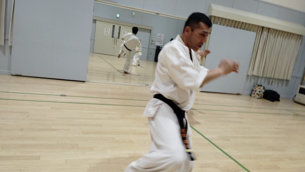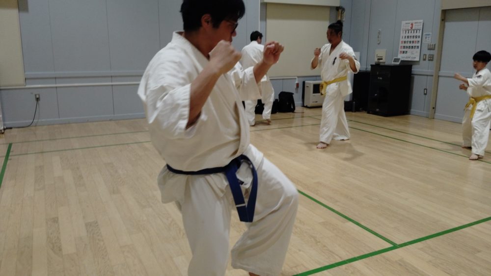 前屈立ち、後屈立ち、三戦立ち、騎馬立ちの移動にまた戻し、繰り返すのが良いと思います。