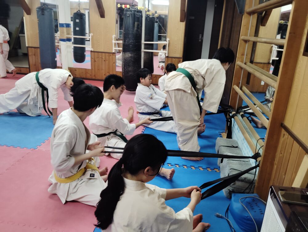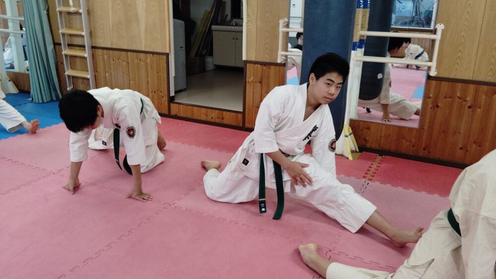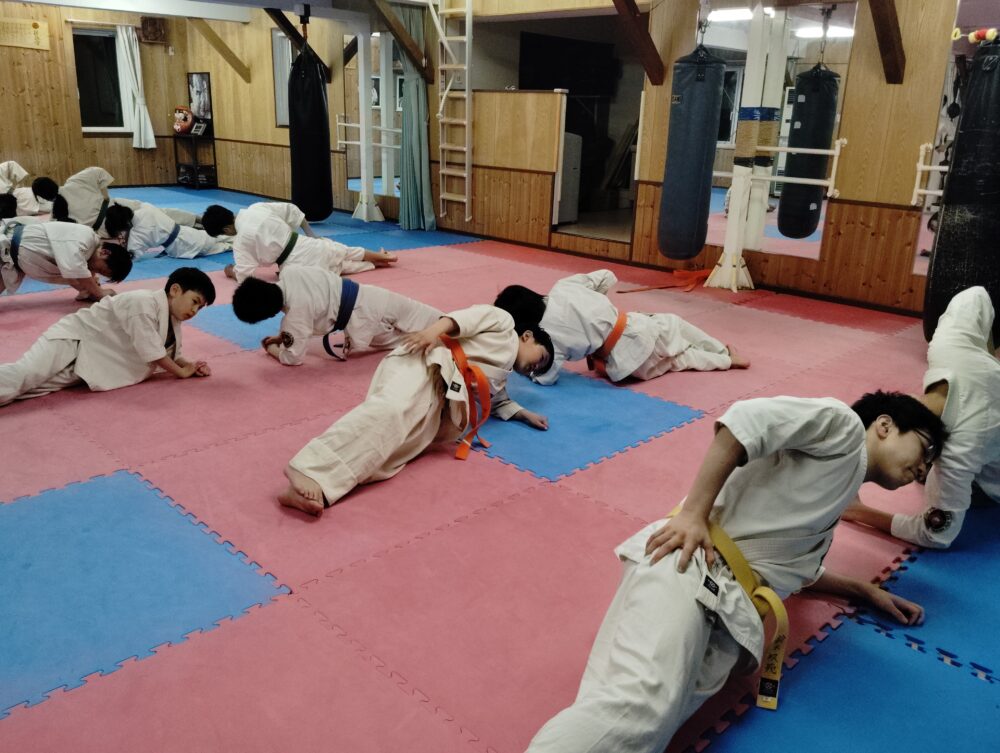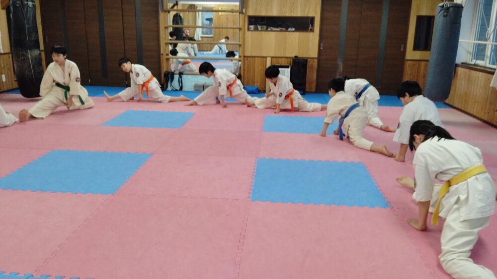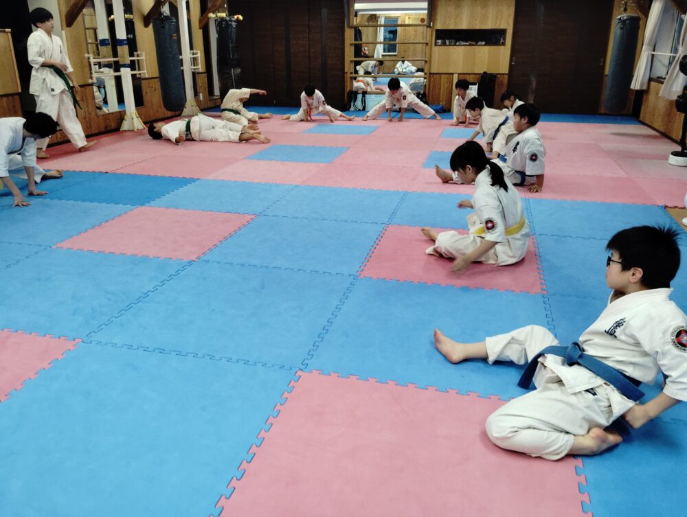 柔軟体操を挟みます。