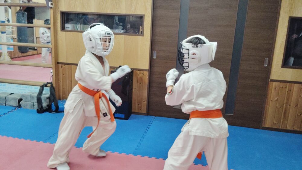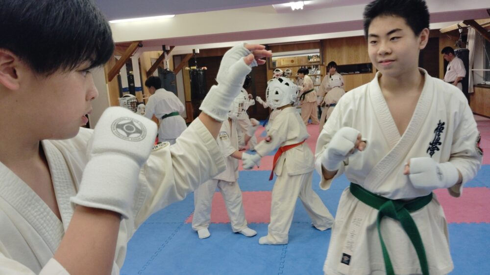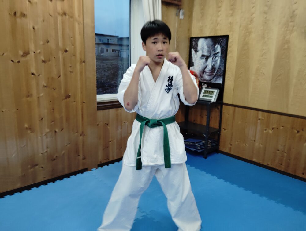 組手構えからの正拳突き。
