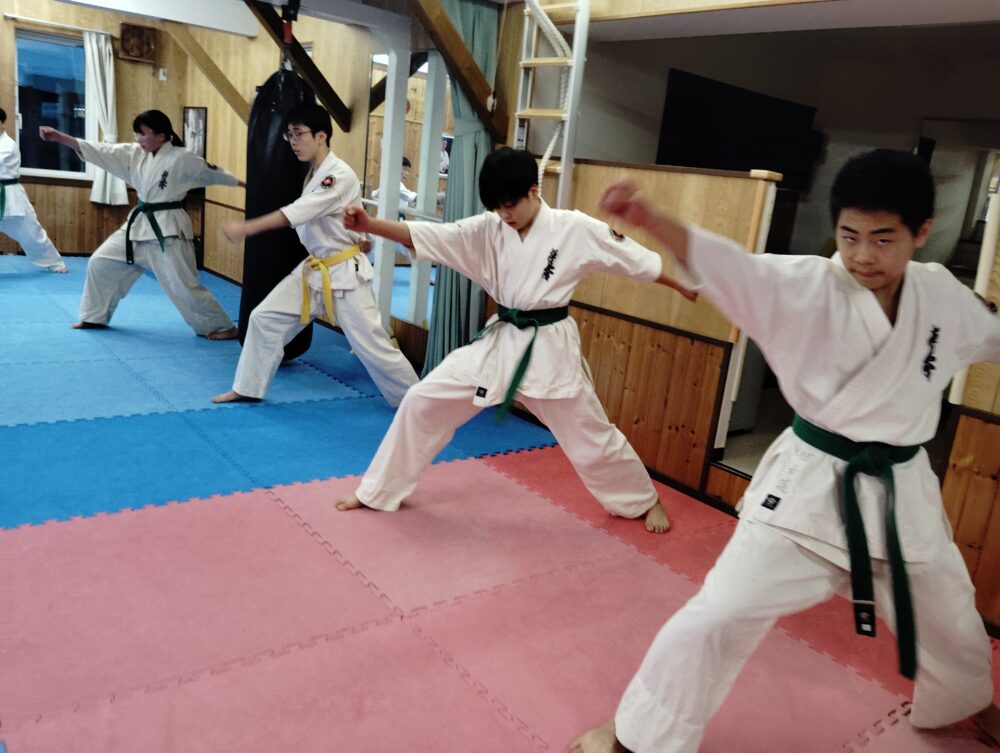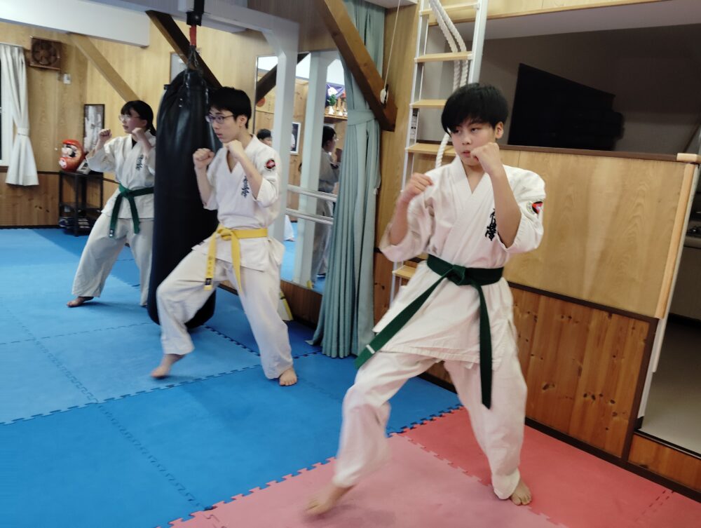 三戦立ち、正拳中段突きから行います。