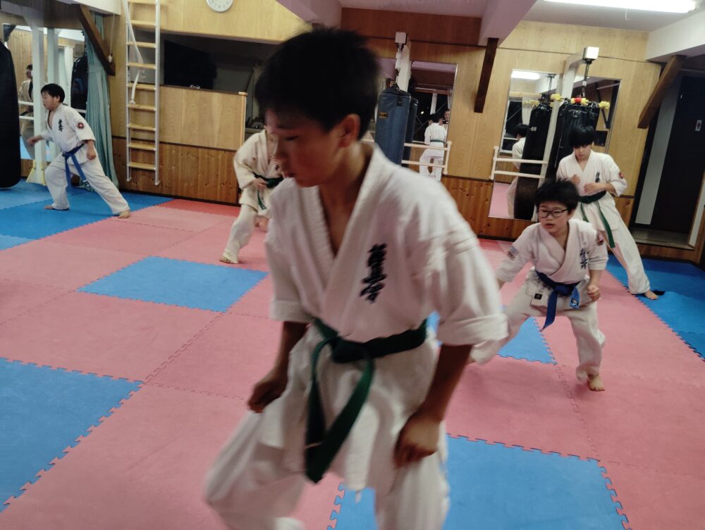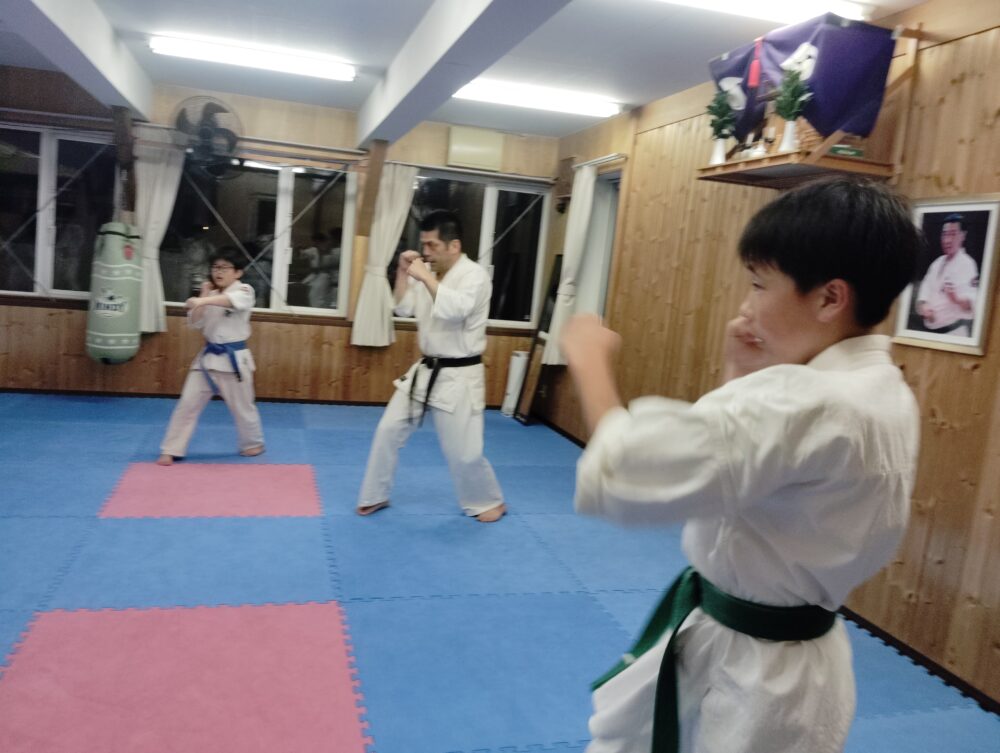 正拳突き、移動稽古でやった事を応用します。