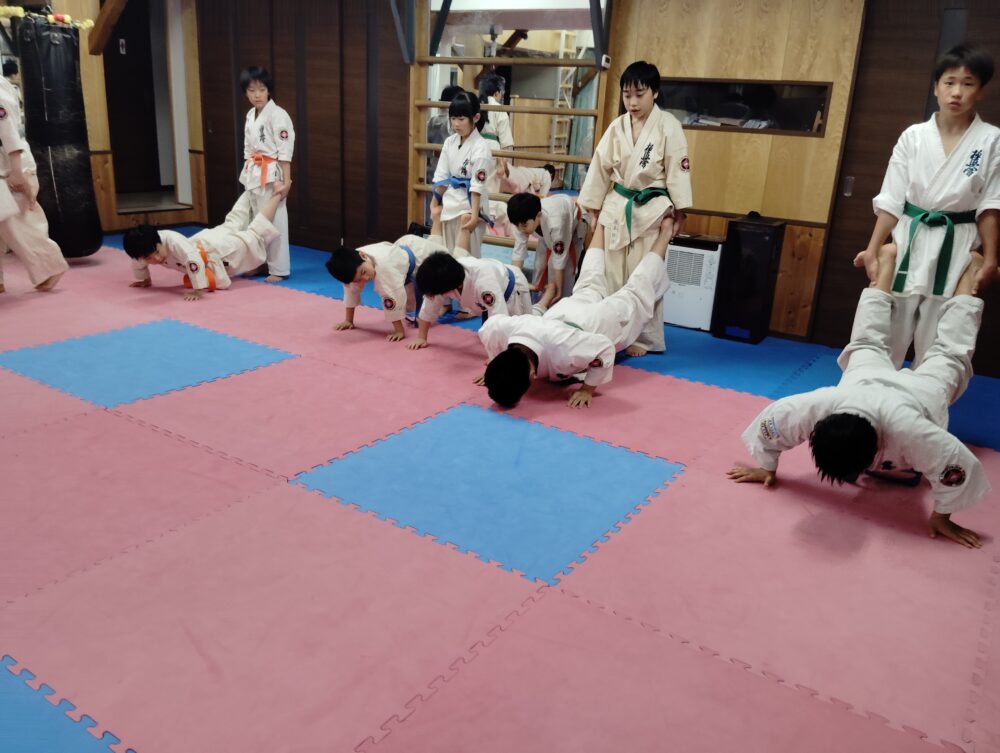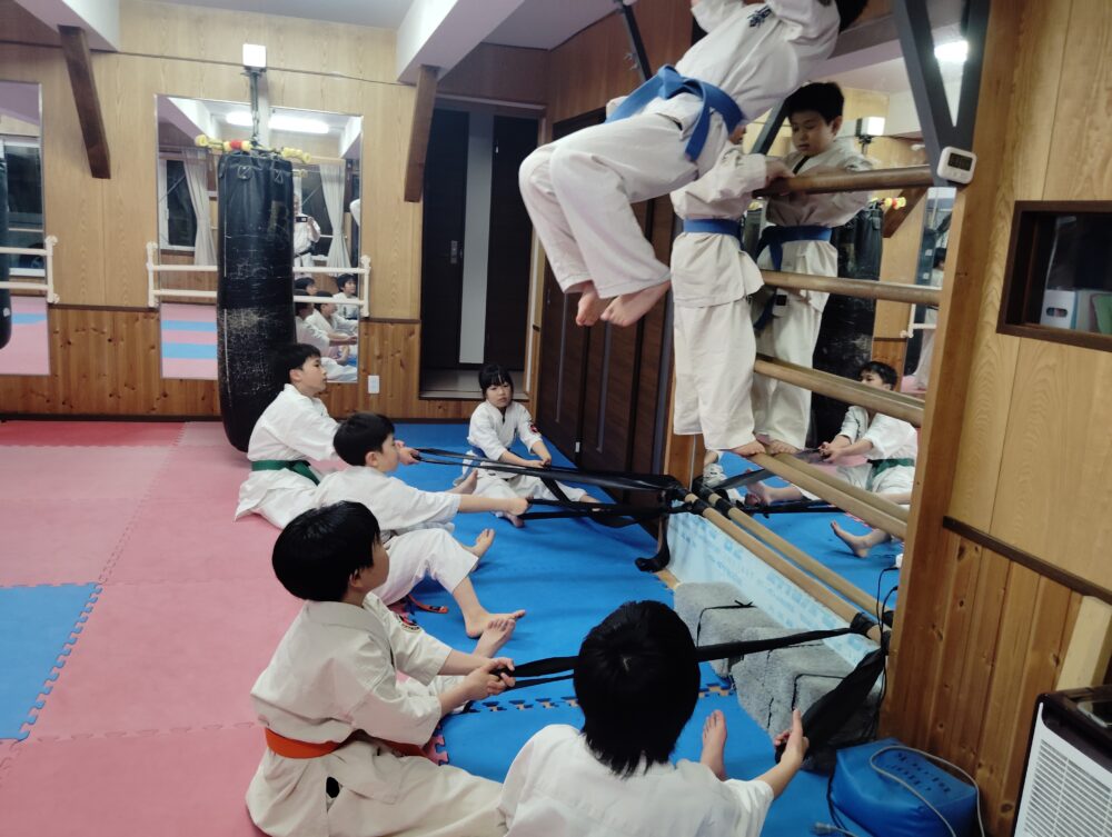 体幹、バランスの稽古。女子の方が優秀でした。