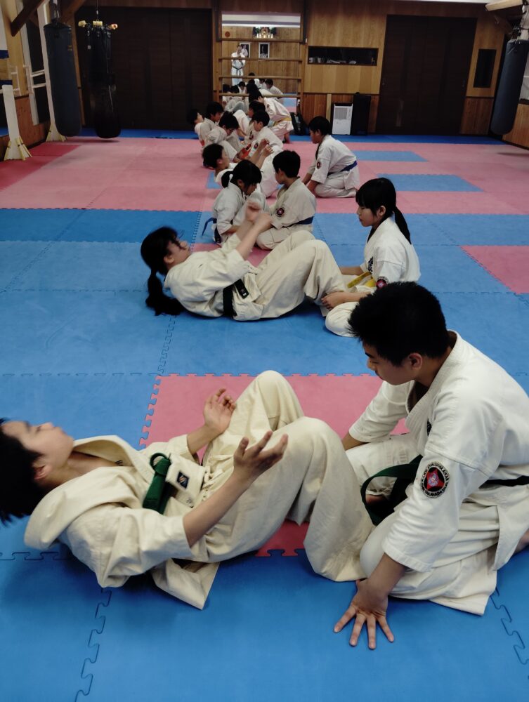 春道先輩の指導で準備体操です。