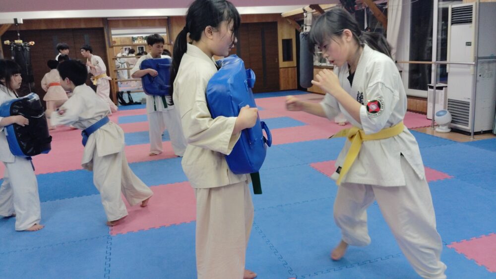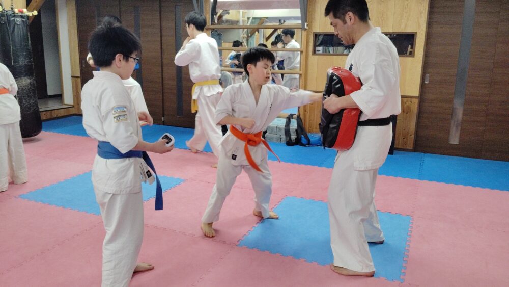 ストレート、下突きを組み合わせます。