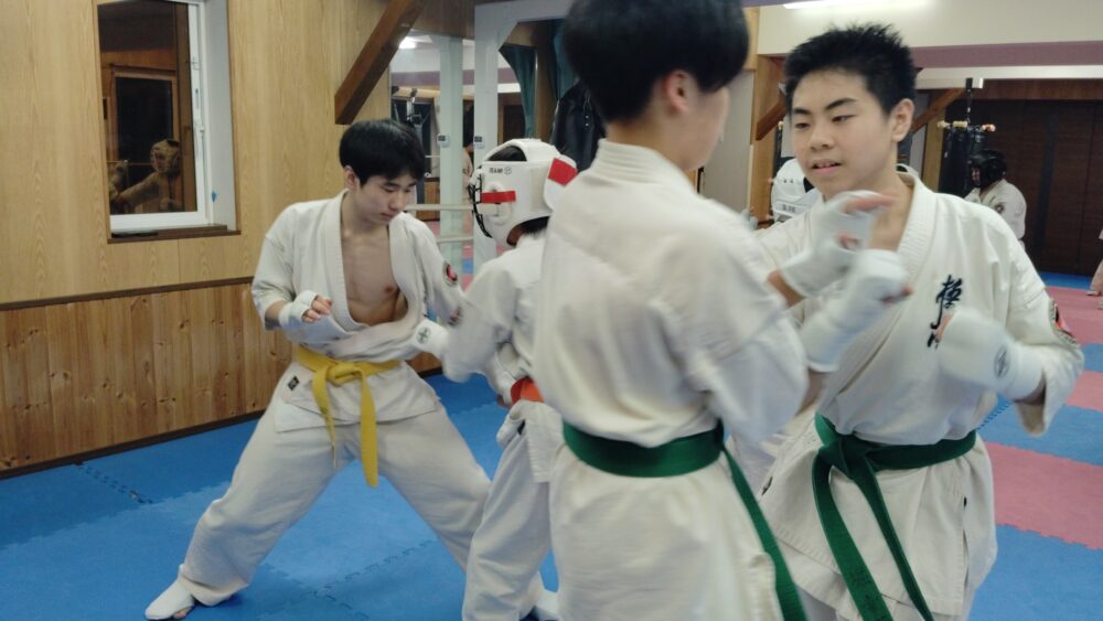 パンチ、ローキック、前蹴りの順で分けて行います。
