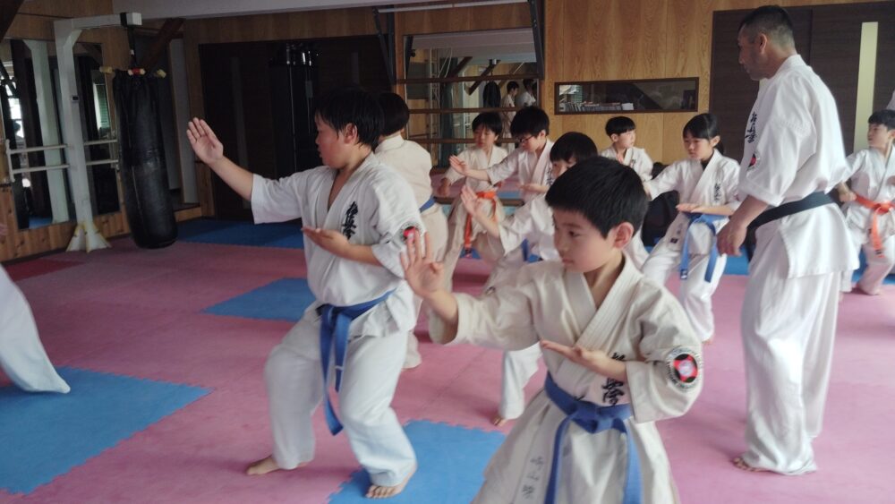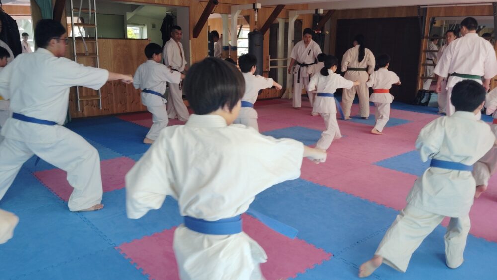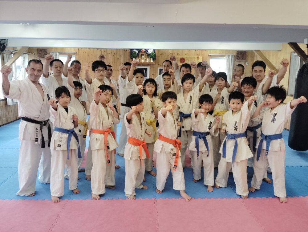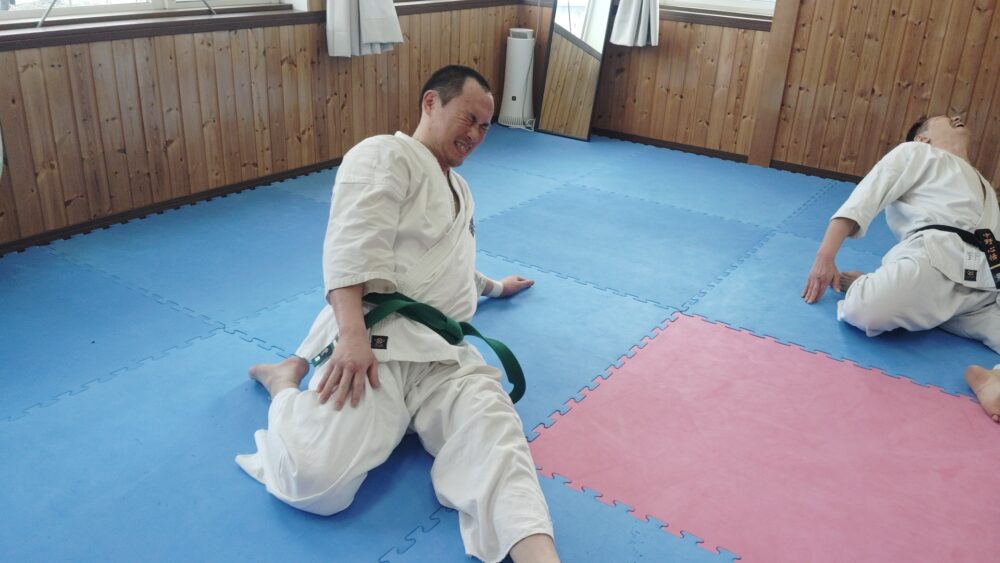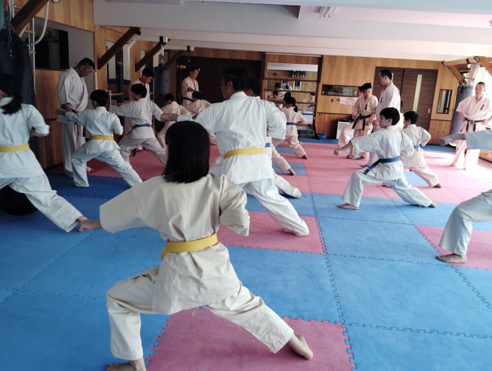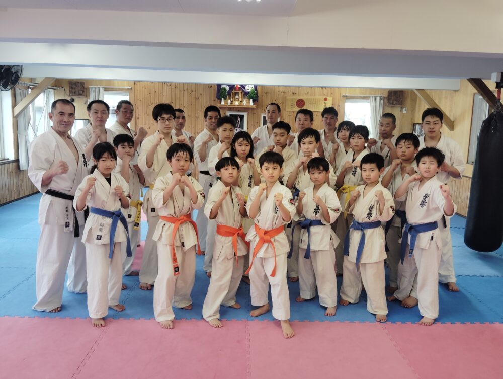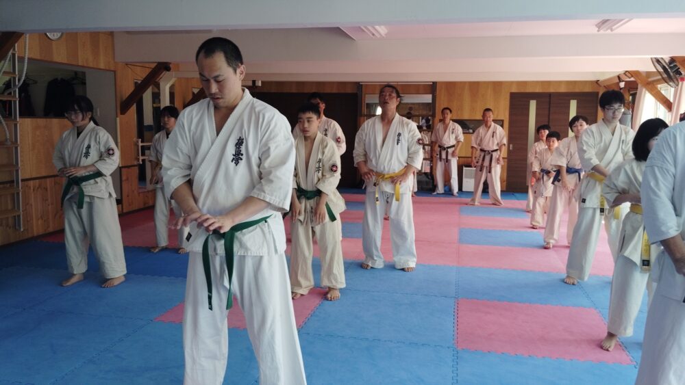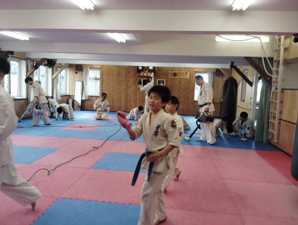 練習会です。準備体操と基本稽古を抜粋して網走支部長の大室健治二段が指導します。