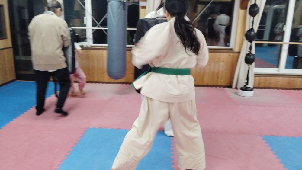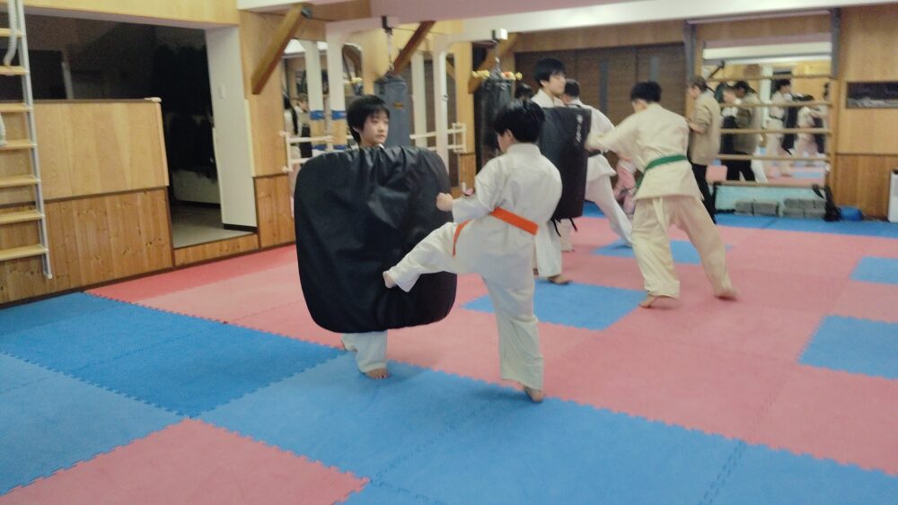 ミット稽古、パンチ、廻し蹴りと続きます。