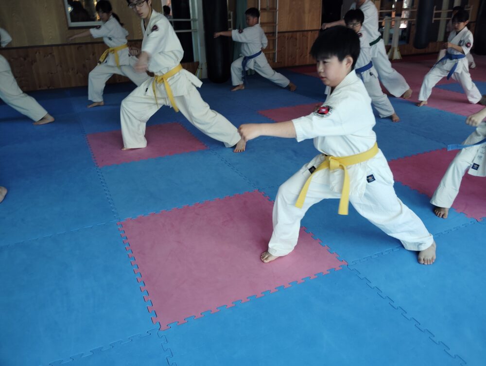 組手立ち、蹴りの移動。