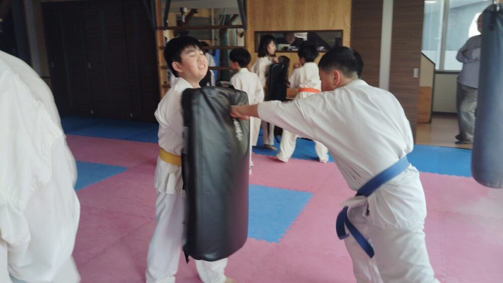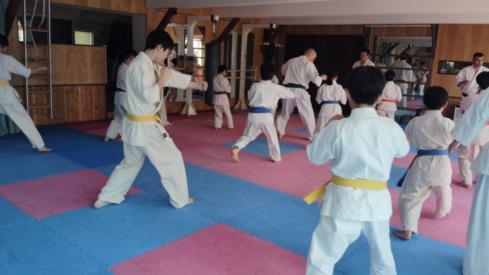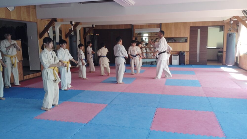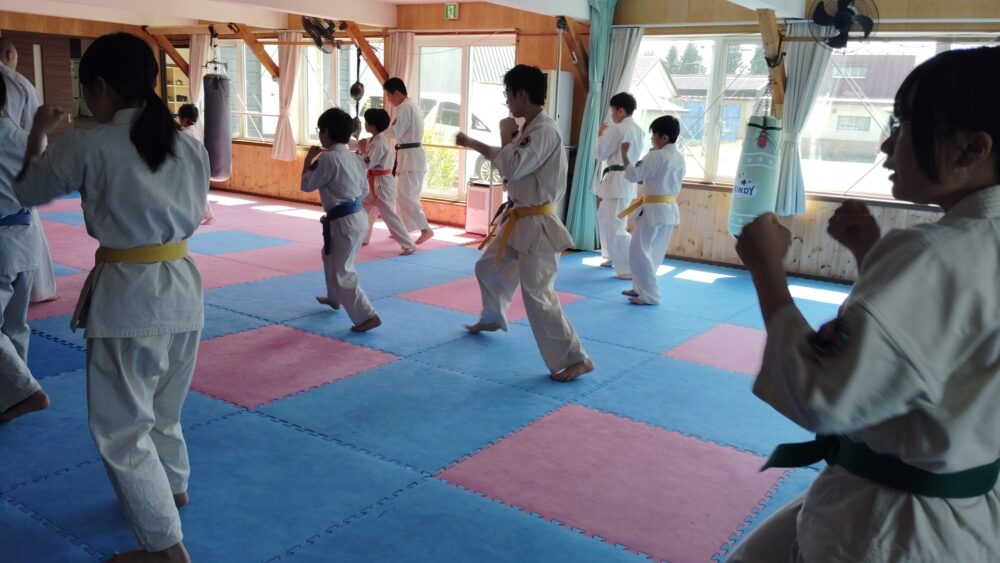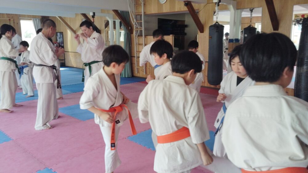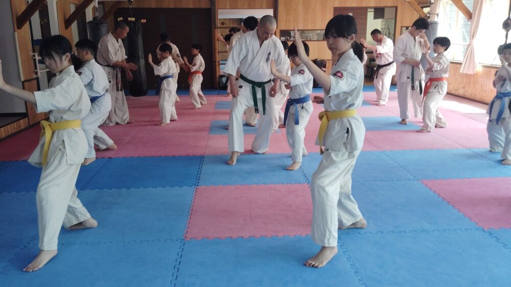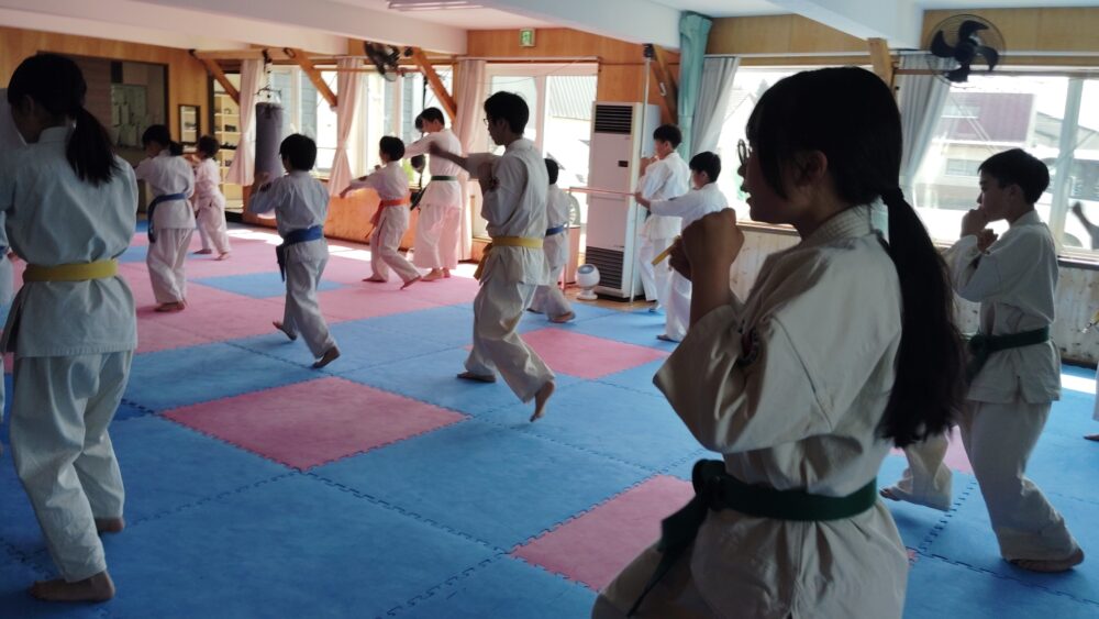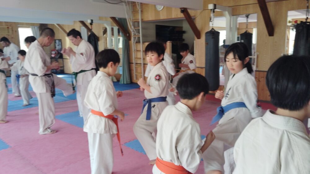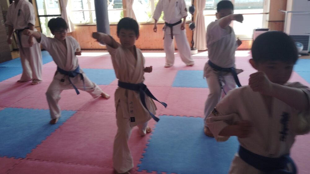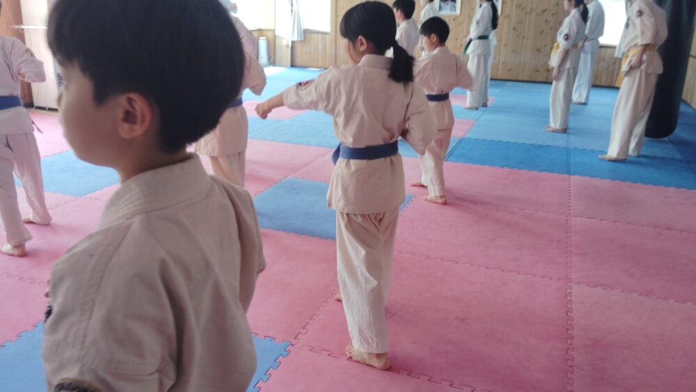 全員で突きの型まで行い、帯ごとに分けて行いました。
