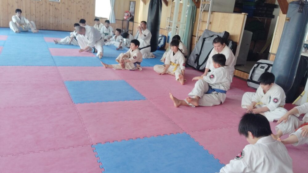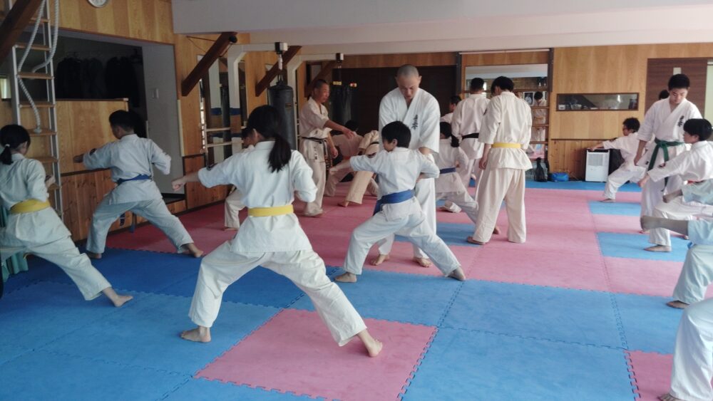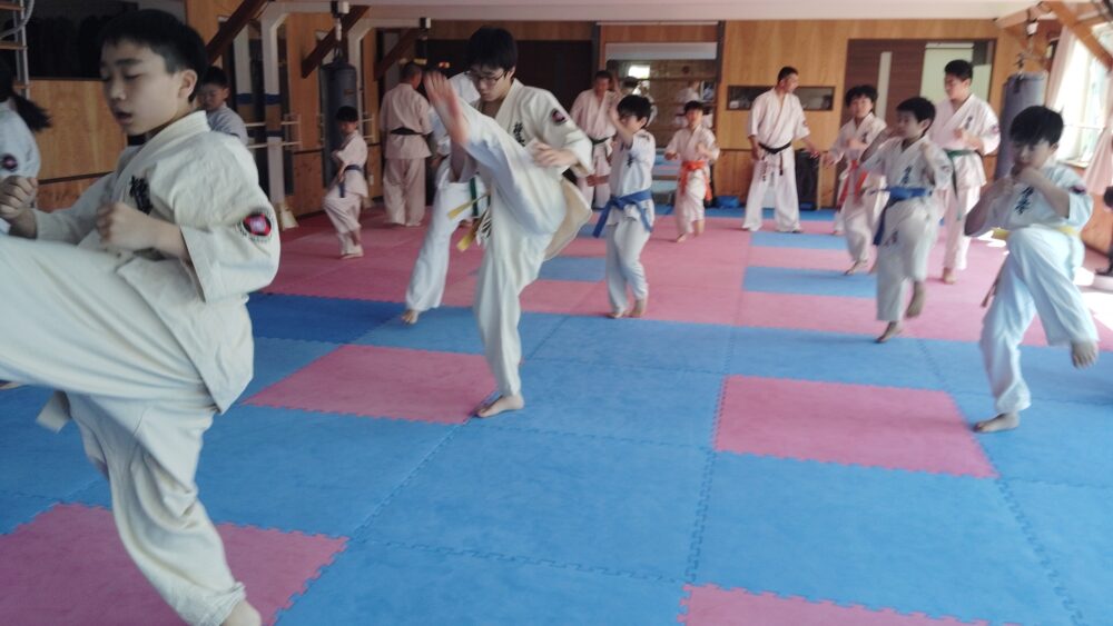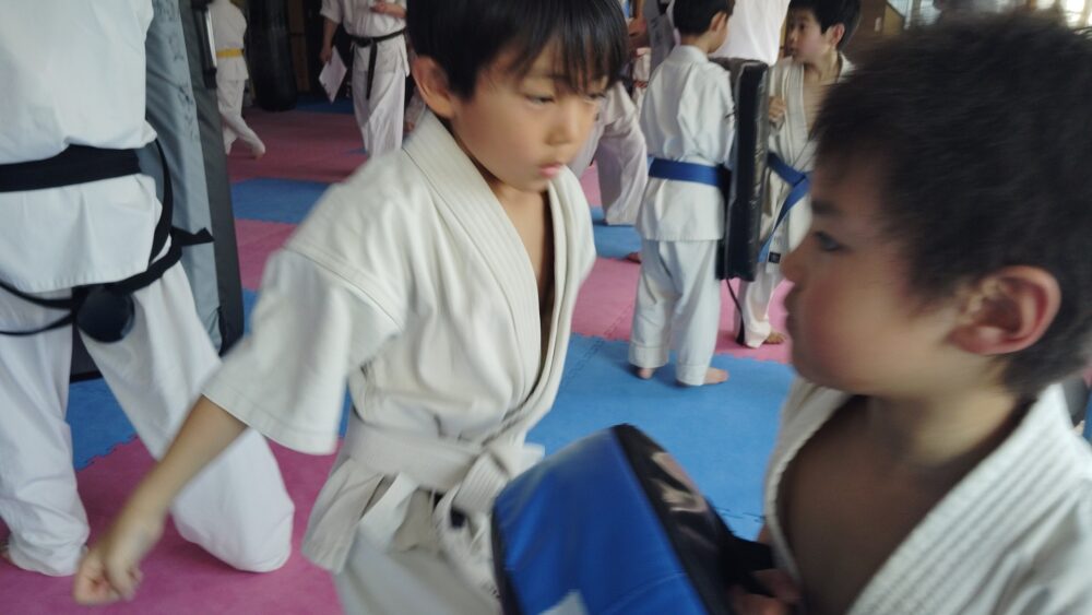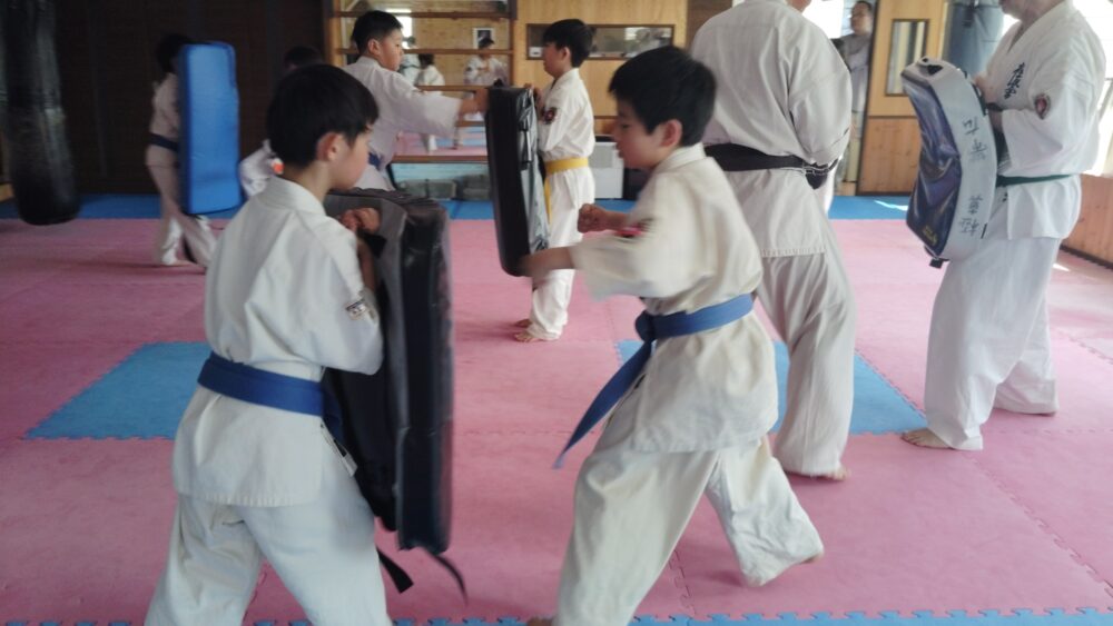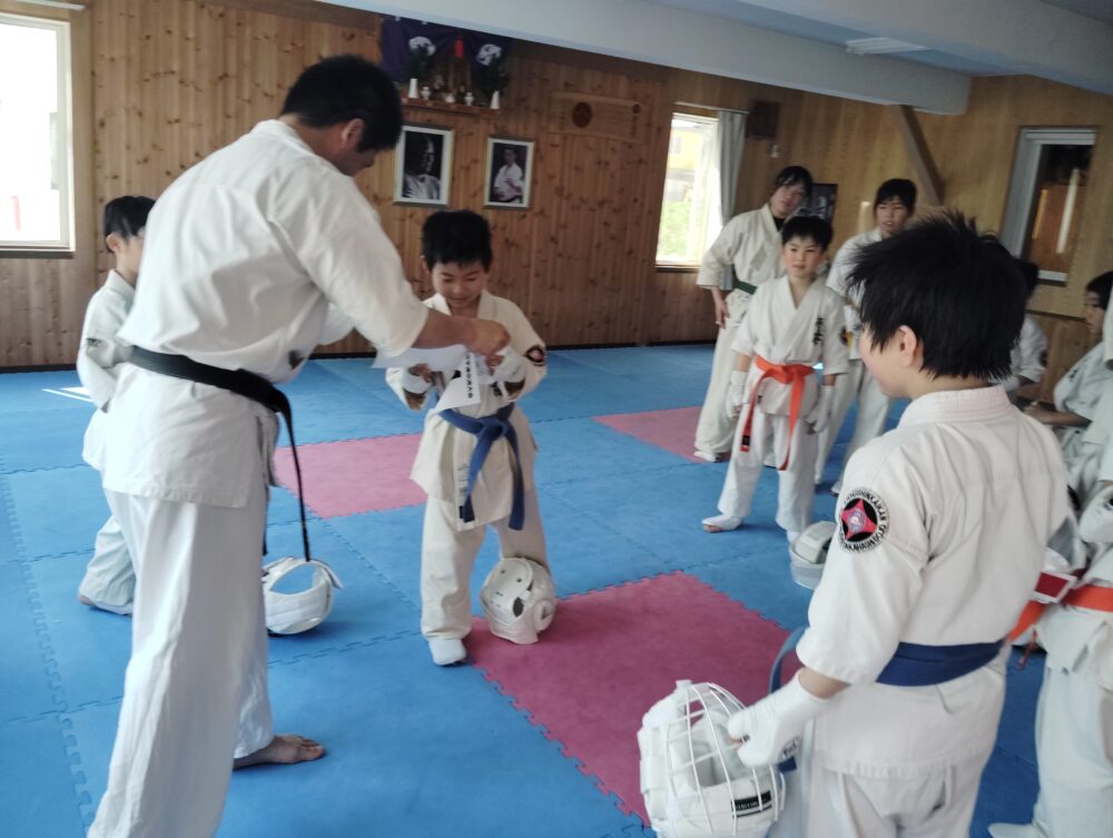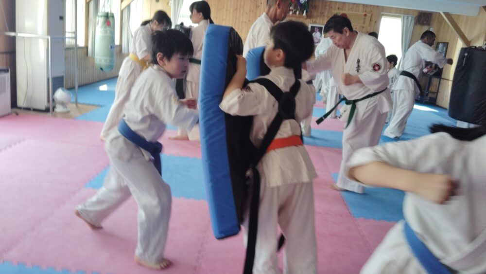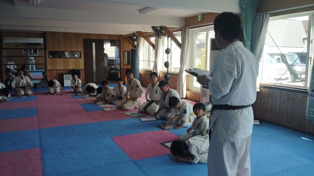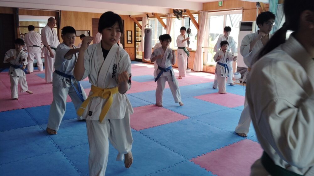 全員で突きの型まで行い、帯ごとに分けて行いました。