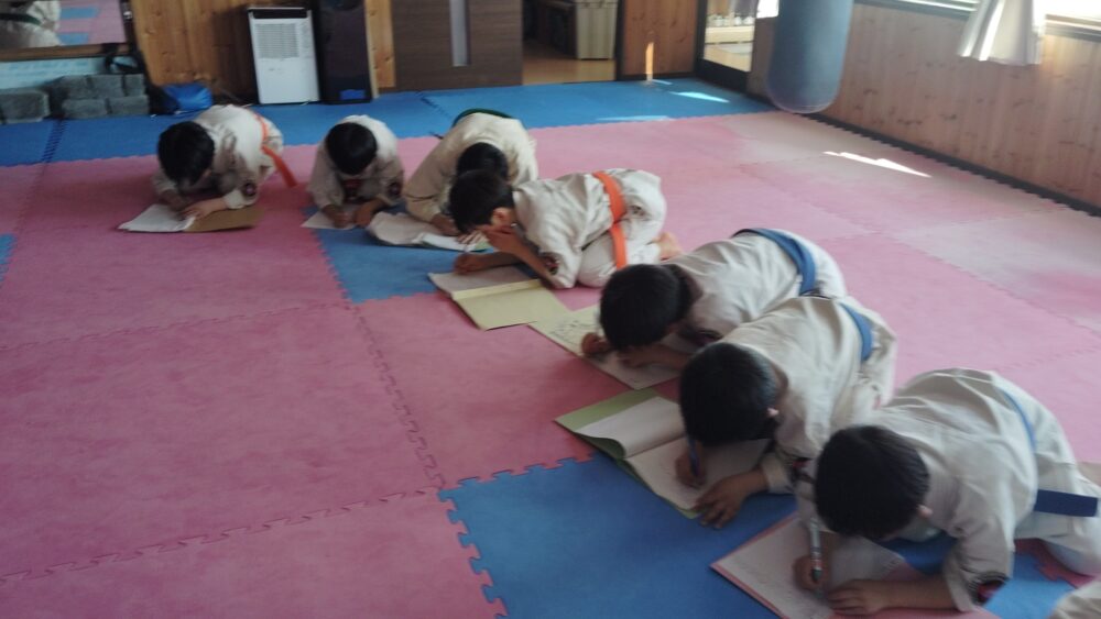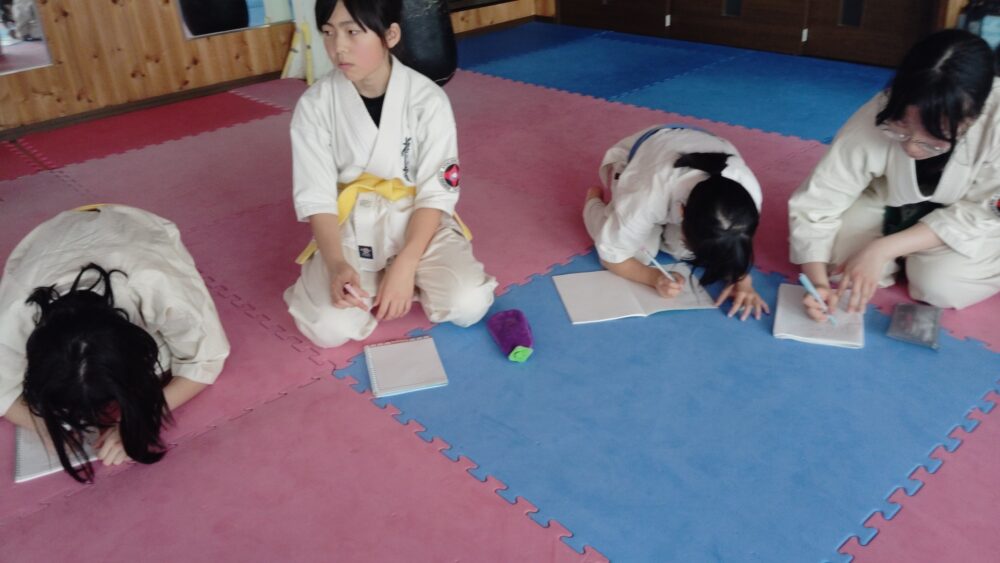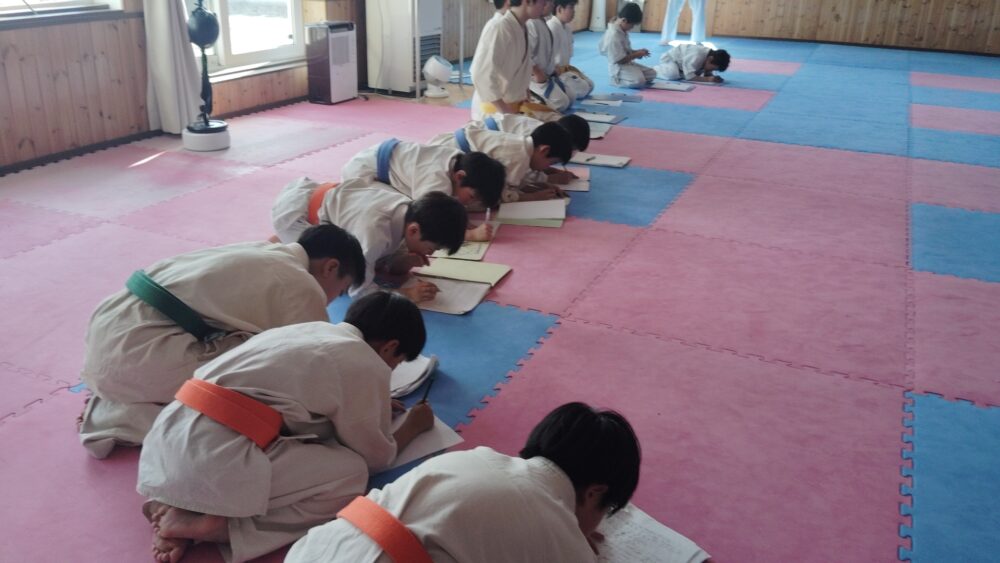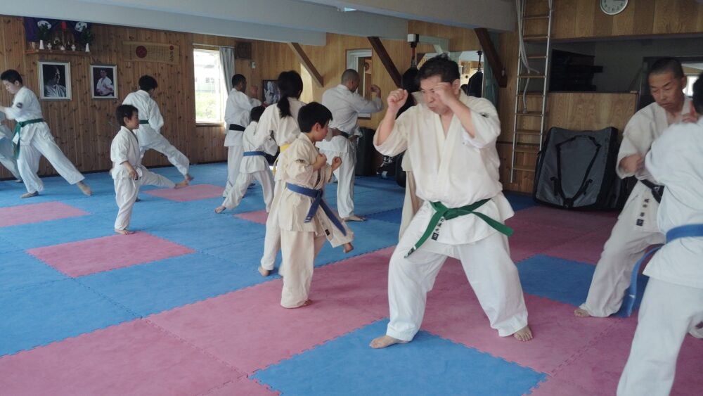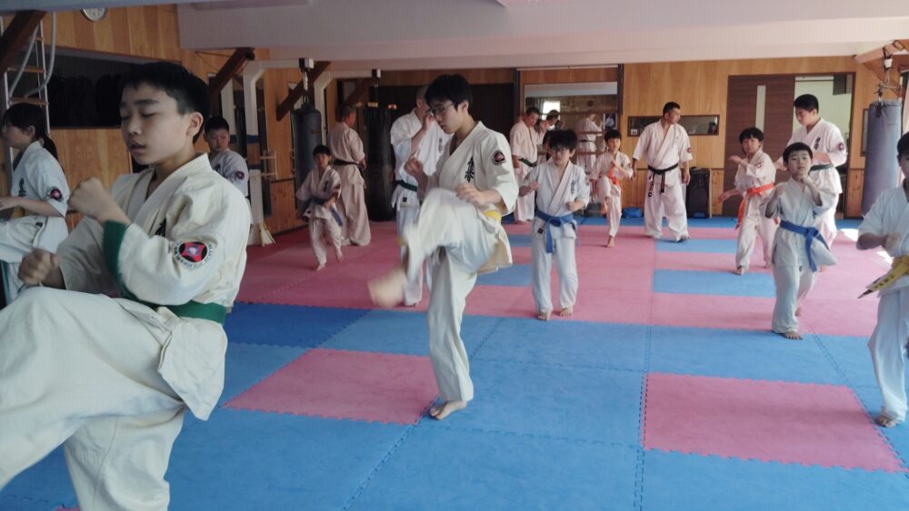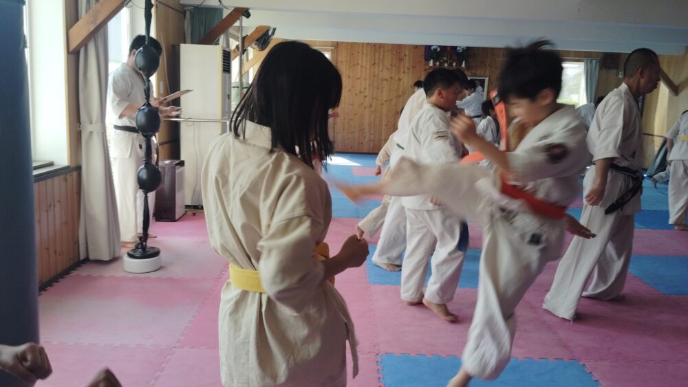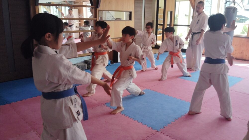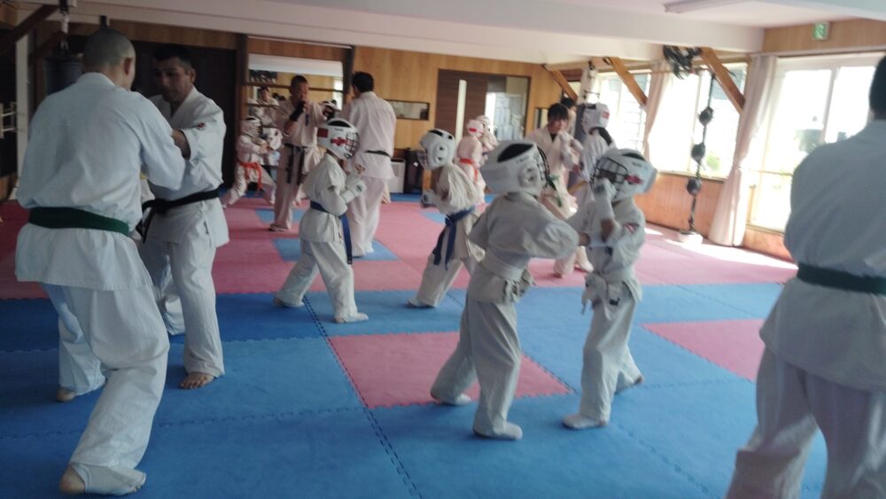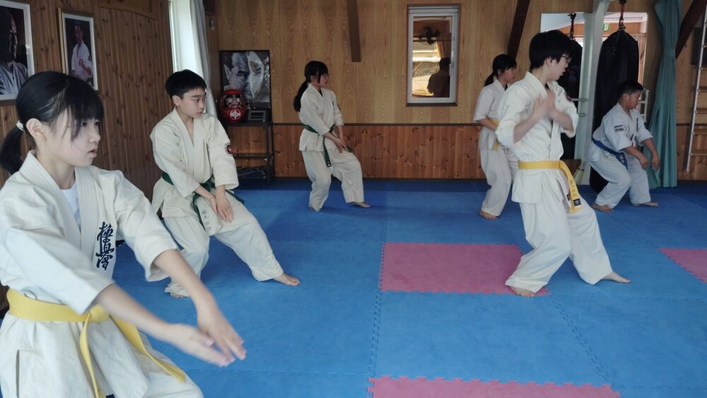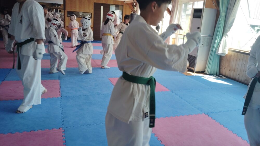 全員で突きの型まで行い、帯ごとに分けて行いました。